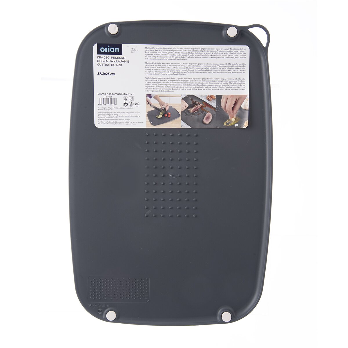 Viac informáciíPraktická doska s hladkou krájacou plochou má mierny sklon, takže aj pri krájaní šťavnatejších potravín, napr. mäsa, paradajok, ovocie, tekutina stečie ku kraju a nedôjde k zašpineniu kuchynskej linky. Je multifunkčná, opatrená z oboch strán protišmykovými podložkami.