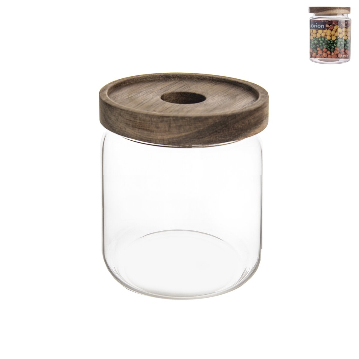 Kód produktu 154502Okrúhla sklenená dóza s objemom 0,73 l je vhodná na uskladnenie najrôznejších surovín na varenie a pečenie. Uzatvára sa viečkom z akáciového dreva, opatreného silikónovým tesnením.