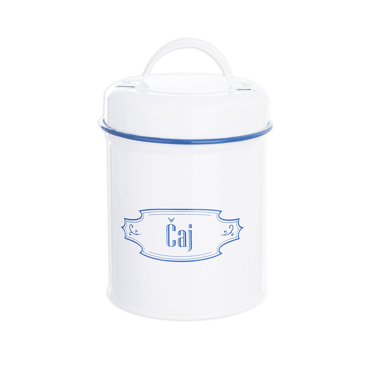 Kód produktu 153644Dóza s viečkom na uloženie čaju. Materiál: plech, Rozmery: pr. 9 cm, v. 15,5 cm.