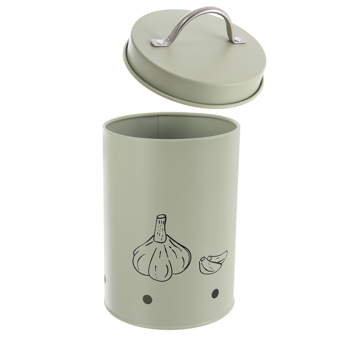 Potlač napovie, aký obsah dóza ukrýva. Táto štýlová dóza bude skvelým miestom na uloženie cesnaku. Súčasťou je aj viečko s držadlom. Ventilačné otvory zaisťujú cirkuláciu vzduchu, zamedzujú hromadeniu vlhkosti a tepla a tým zabraňujú klíčeniu, vzniku plesní a zaisťujú dlhšiu trvanlivosť. Navyše je aj dizajnovým kúskom.