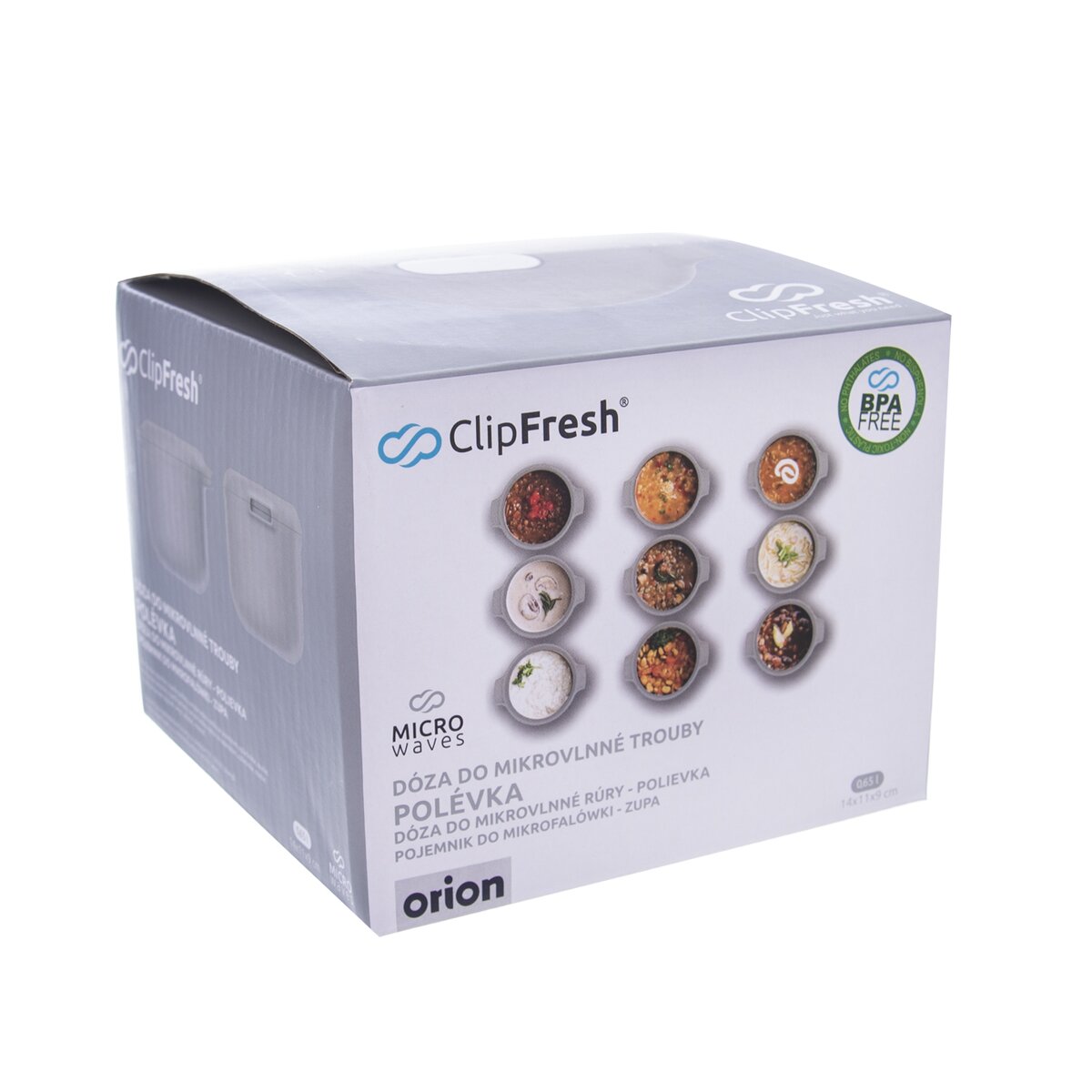 ClipFresh dóza na polievku s viečkom Vám pomôže pripraviť polievku v MVT v priebehu niekoľkých minút. Viečko s ventilom pre postupné vypustenie pary. Materiál: kvalitný plast bez BPA. Vhodná do umývačky riadu, MVT, chladničky i mrazničky (-20°C až 120°C). Rozmery: objem 0,65 l, 14x11x9 cm. Návod postupu je súčasťou balenia.