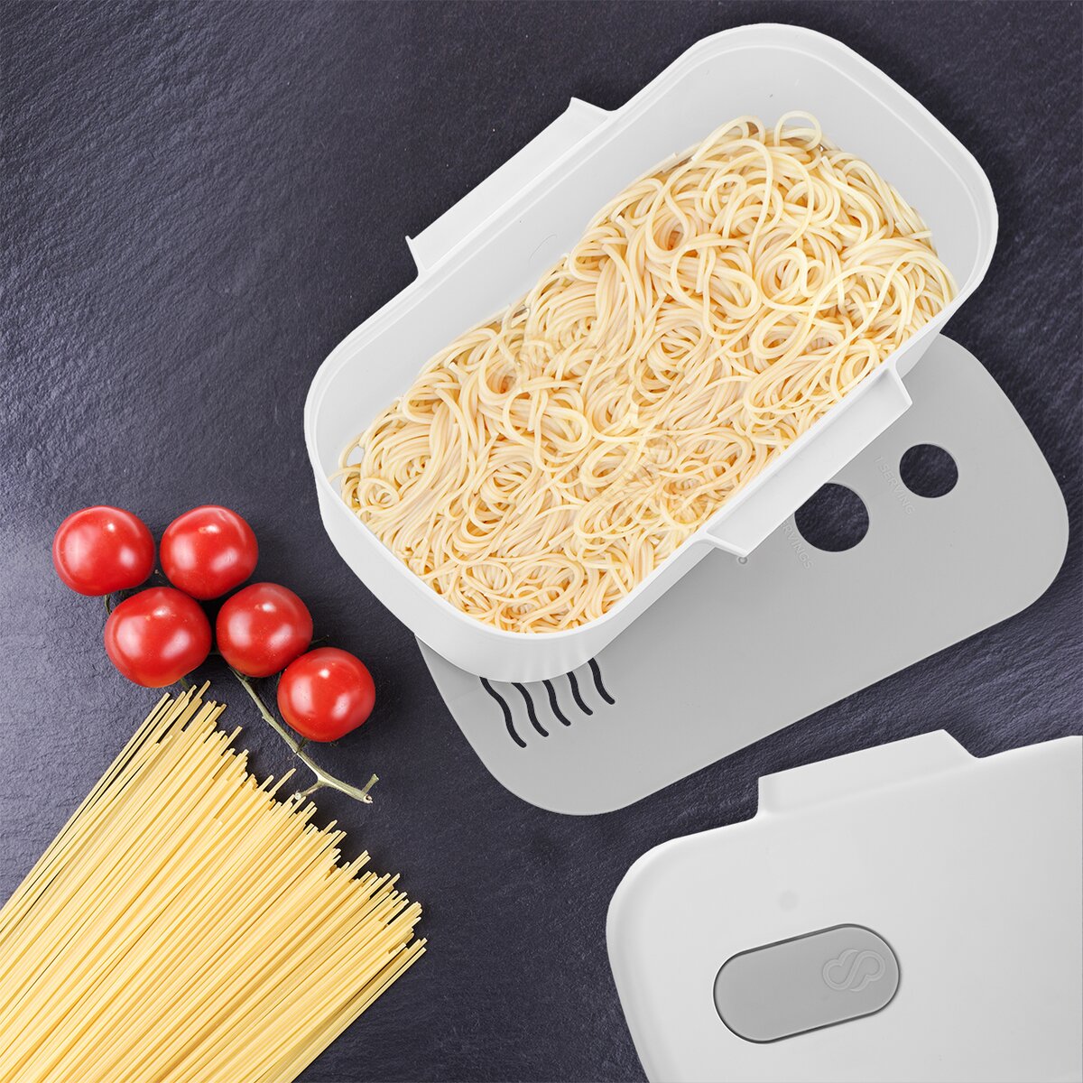 Kód produktu 127117Uvarte si špagety alebo iné cestoviny v mikrovlnnej rúre v priebehu niekoľkých minút v dóze ClipFresh. Vložíte cestoviny, prilejete vodu, uzatvoríte vekom, povolíte ventil, umiestnite do mikrovlnnej rúry a za niekoľko minút sú cestoviny hotové. Rýchle, jednoduché a bezpečné varenie. Vo vnútornom viečku sú otvory na odmeranie množstva špagiet a otvory pre jednoduché cedenie cestovín po uvarení. Materiál: kvalitný plast bez PBA. Vhodná do umývačky riadu, MVT, chladničky i mrazničky (-20 °C až 120 °C). Rozmery: objem 2,5 l, 26,5x17x10,5 cm. Návod postupu je súčasťou balenia.