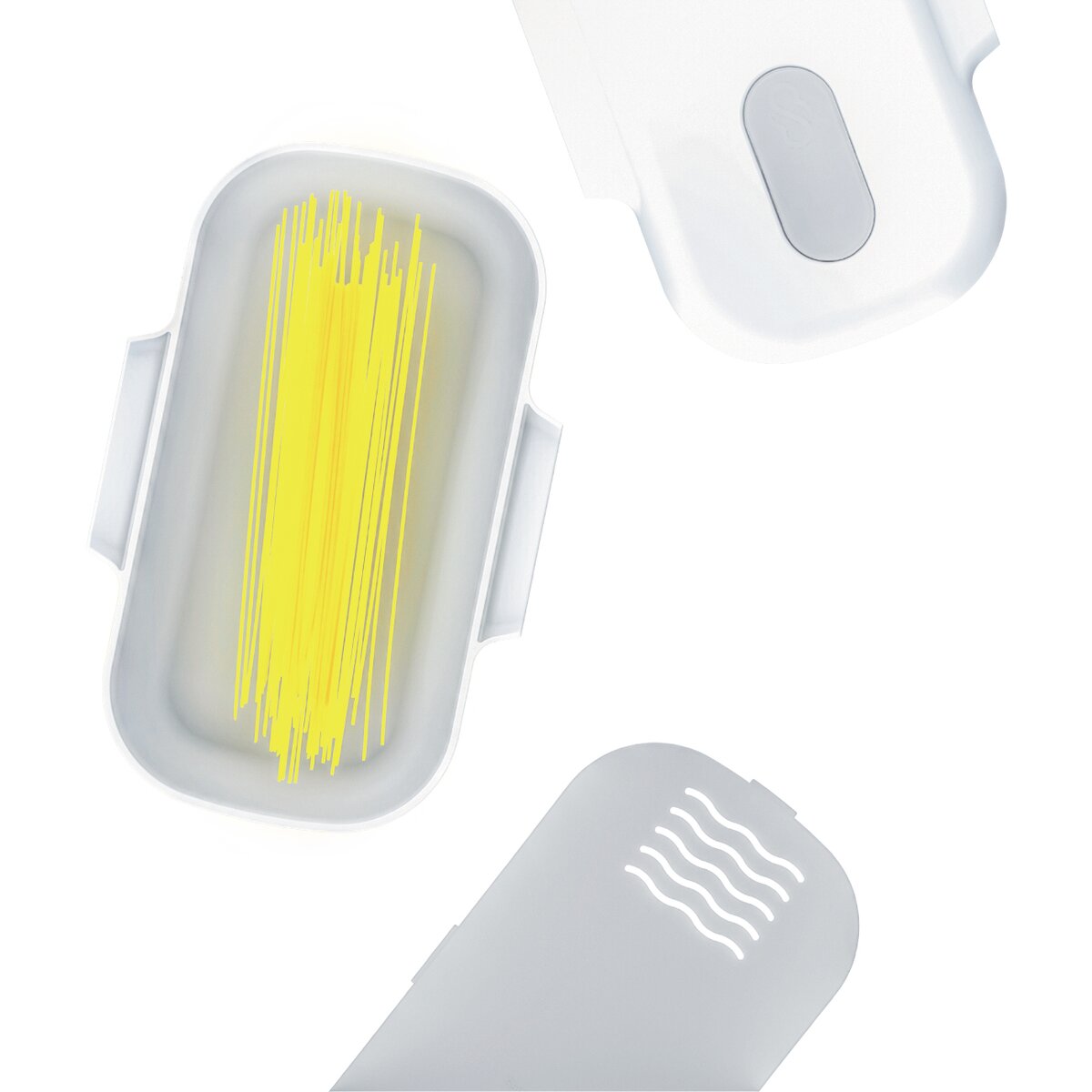 Uvarte si špagety alebo iné cestoviny v mikrovlnnej rúre v priebehu niekoľkých minút v dóze ClipFresh. Vložíte cestoviny, prilejete vodu, uzatvoríte vekom, povolíte ventil, umiestnite do mikrovlnnej rúry a za niekoľko minút sú cestoviny hotové. Rýchle, jednoduché a bezpečné varenie. Vo vnútornom viečku sú otvory na odmeranie množstva špagiet a otvory pre jednoduché cedenie cestovín po uvarení. Materiál: kvalitný plast bez PBA. Vhodná do umývačky riadu, MVT, chladničky i mrazničky (-20 °C až 120 °C). Rozmery: objem 2,5 l, 26,5x17x10,5 cm. Návod postupu je súčasťou balenia.