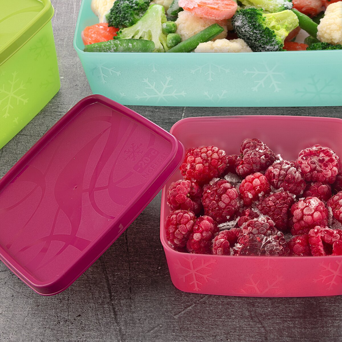 Viac informáciíPokiaľ neviete, čo robiť s nadmernou úrodou zeleniny, plnými košíkmi húb alebo so stromami obalenými ovocím, skúste vašu nádielku zamraziť. Plastová dóza FROST slúži na ukladanie potravín do chladničky alebo mrazničky.
