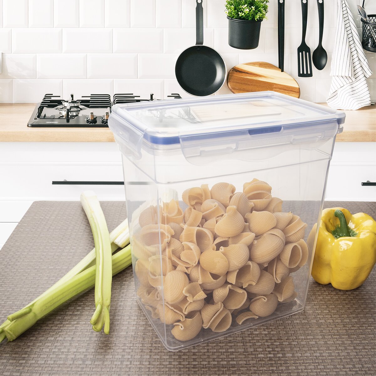 Kód produktu 127179Vyššia hranatá transparentná dóza s objemom 3 l slúži na uloženie potravín a rôznych potrieb v domácnosti. Pevné uzavretie umožní silikónové tesnenie vo viečku a klipy po stranách.