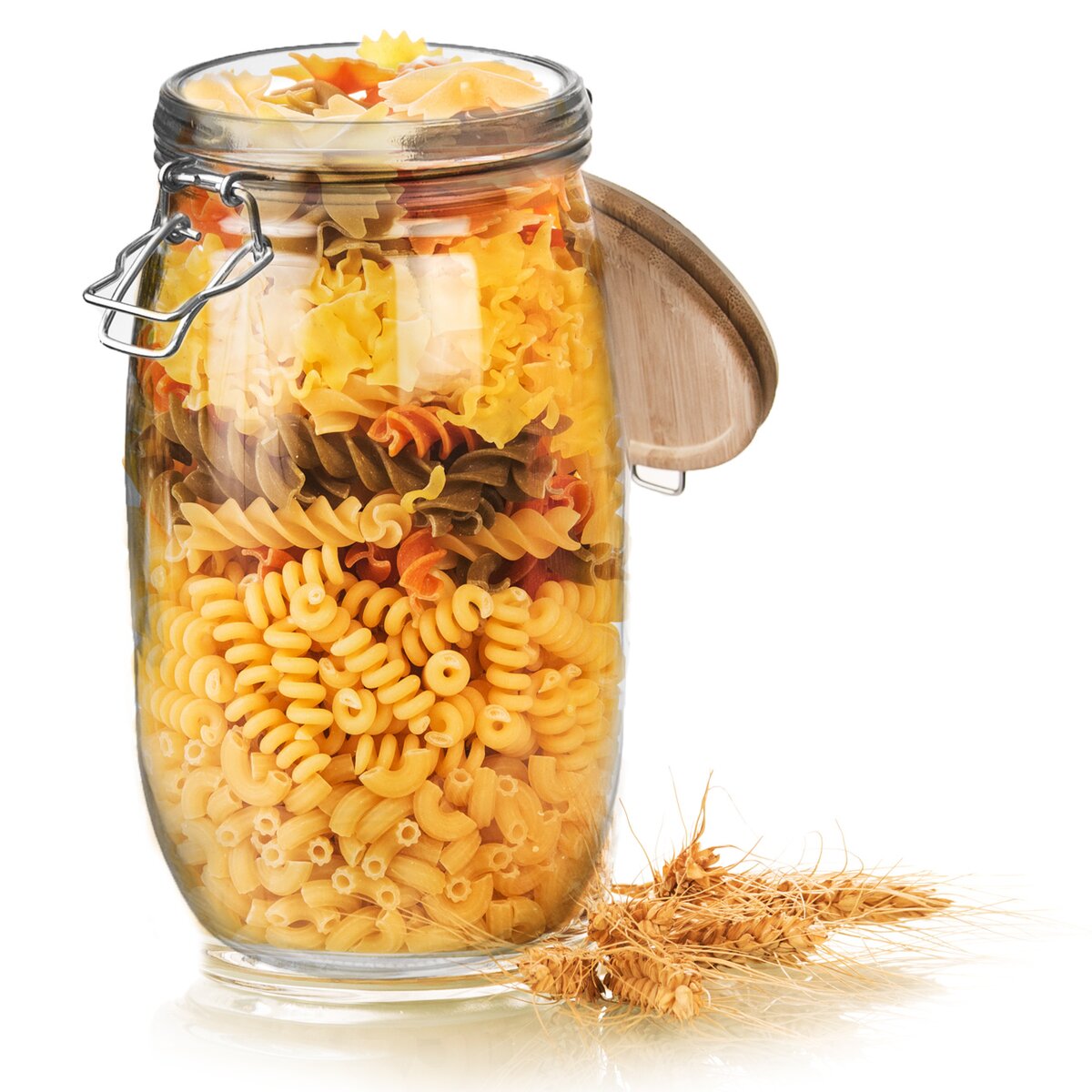 Kód produktu 153690Sklenená dóza s objemom 2,3 l a priemerom 13 cm, uzavretá bambusovým viečkom s kovovým patentom a silikónovým tesnením.
