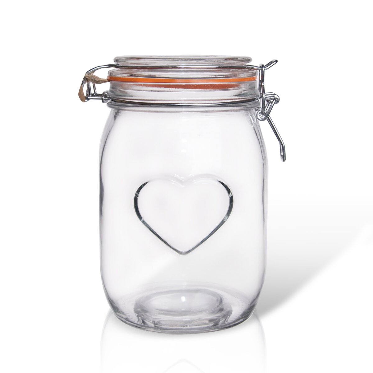 Pevné utesnenie jej obsahu zaisťuje silikónové tesnenie a patentný drôtený uzáver. Môže byť aj krásnym hand made darčekom, naplnená vo vrstvách orieškami a semienkami. Pozornosť zaujme svojim jemným plastickým dekórom srdca. Pokiaľ do nej vložíte napríklad sviečku alebo kamienky, bude z nej krásna dekorácia na váš stôl.
