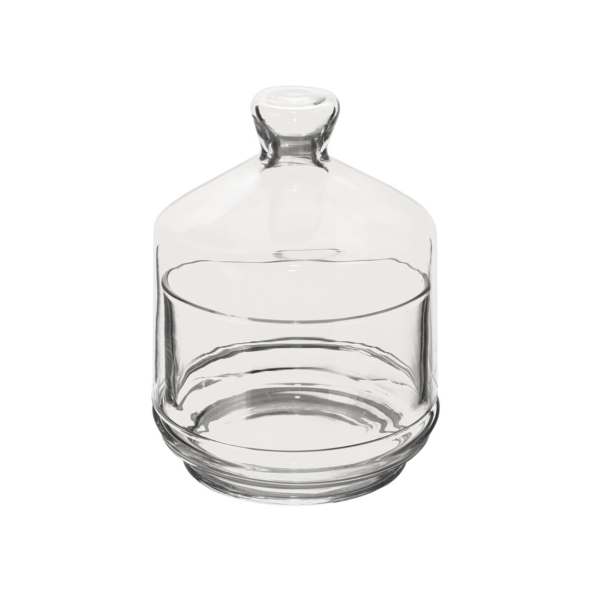 Sklenená dóza s vyšším lemom slúži na uloženie rozkrojeného citróna, zázvoru, cesnaku, cibule aj aromatických syrov. A aby sa vôňa nedostala k ostatným potravinám, napr. v chladničke, kryje ju sklenený poklop s úchytom, ktorý stačí podľa potreby sňať.