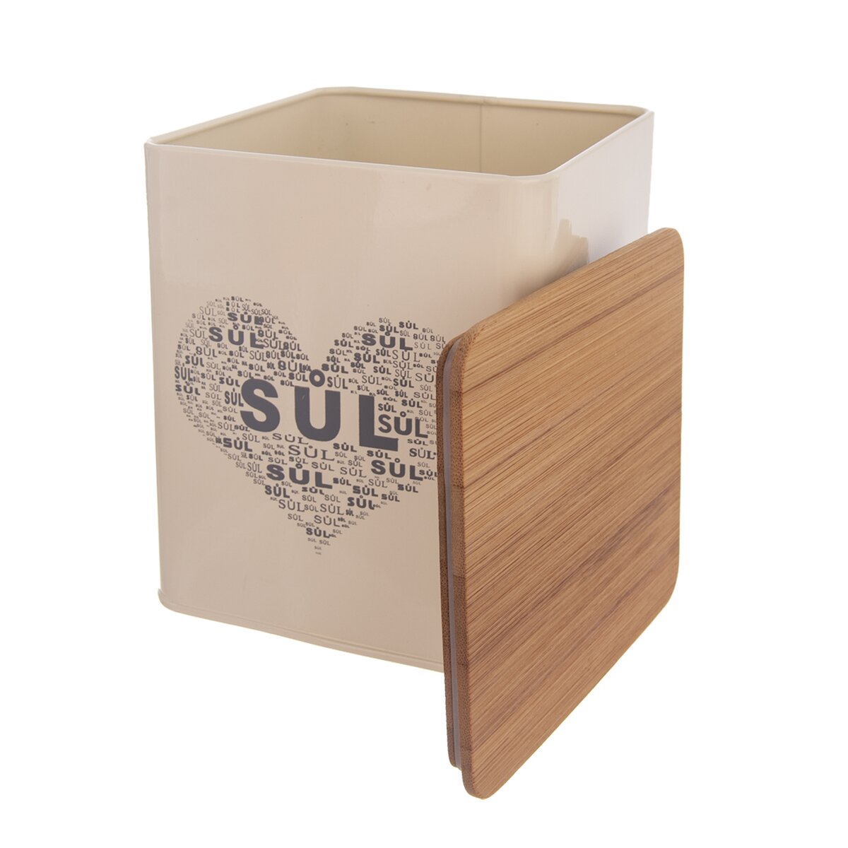 Táto plechová dóza v smotanovej farbe nesie nápis SŮL. Či už teda preferujete morskú, himalájsku alebo dokonca čiernu soľ, táto nádoba bude perfektným miestom na jej uloženie. Súčasťou je aj drevené viečko so silikónovým tesnením, ktoré zaručuje pevné uzavretie nádoby.
