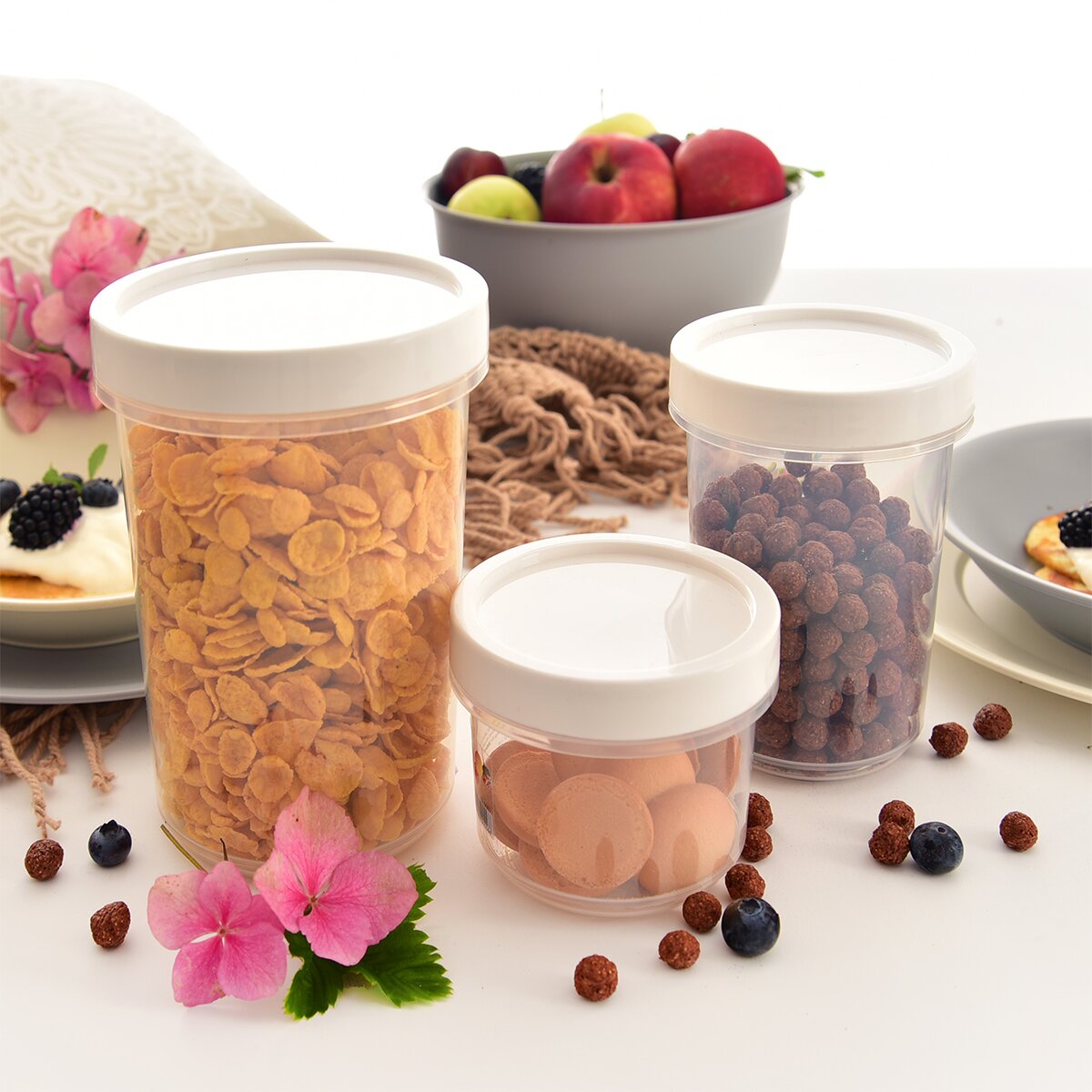 Hodí sa na uskladnenie strukovín, orieškov, korenia a ďalších potravín a pochutín. Môžete ju tiež využiť na prenášanie pripravených pokrmov, ako sú raňajkové kaše, puding, ovocie s tvarohom alebo iných desiat. Viečko a silikónové tesnenie zabraňujú rozliatiu alebo vysypaniu obsahu nádoby. Je možné ju vložiť do chladničky a mrazničky alebo ju umývať v umývačke riadu. Po sňatí plastového viečka ju môžete použiť aj na ohrievanie potravín v mikrovlnnej rúre.