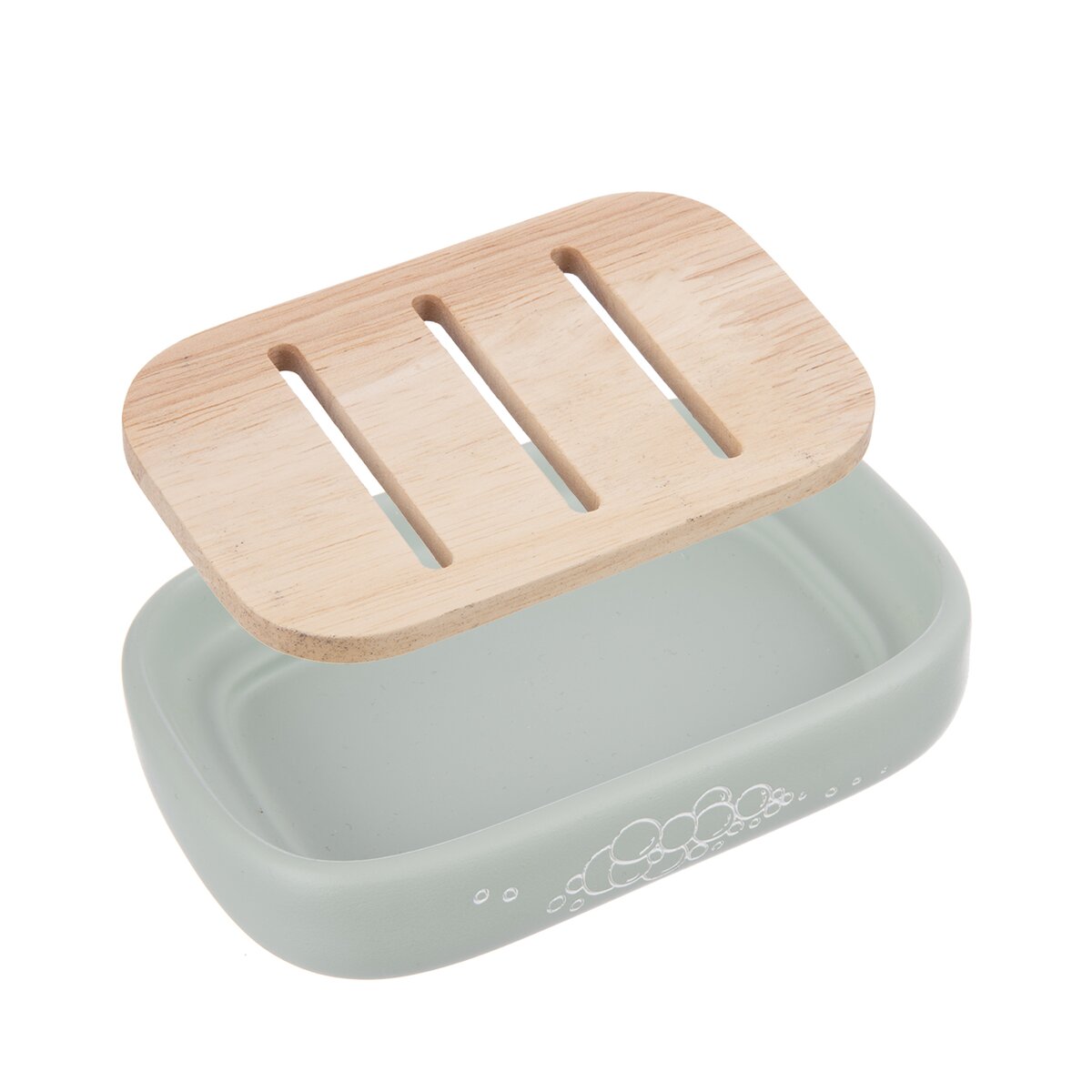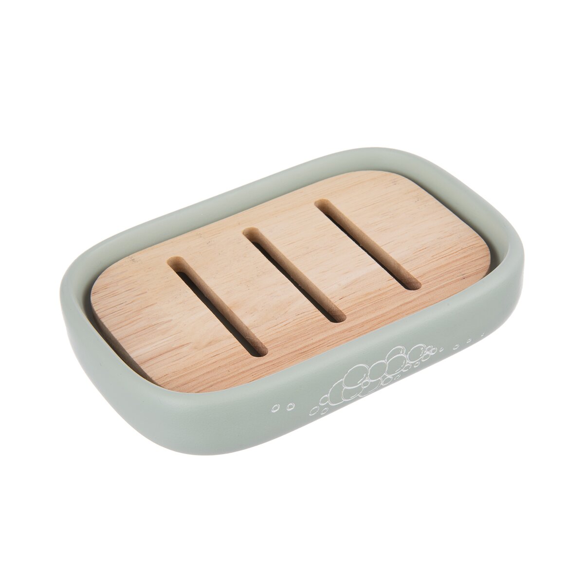 Kód produktu 532149Držiak na tuhé mydlo z polyresinu z kolekcie GREENISH je doplnený vložkou s otvormi z gumovníkového dreva.