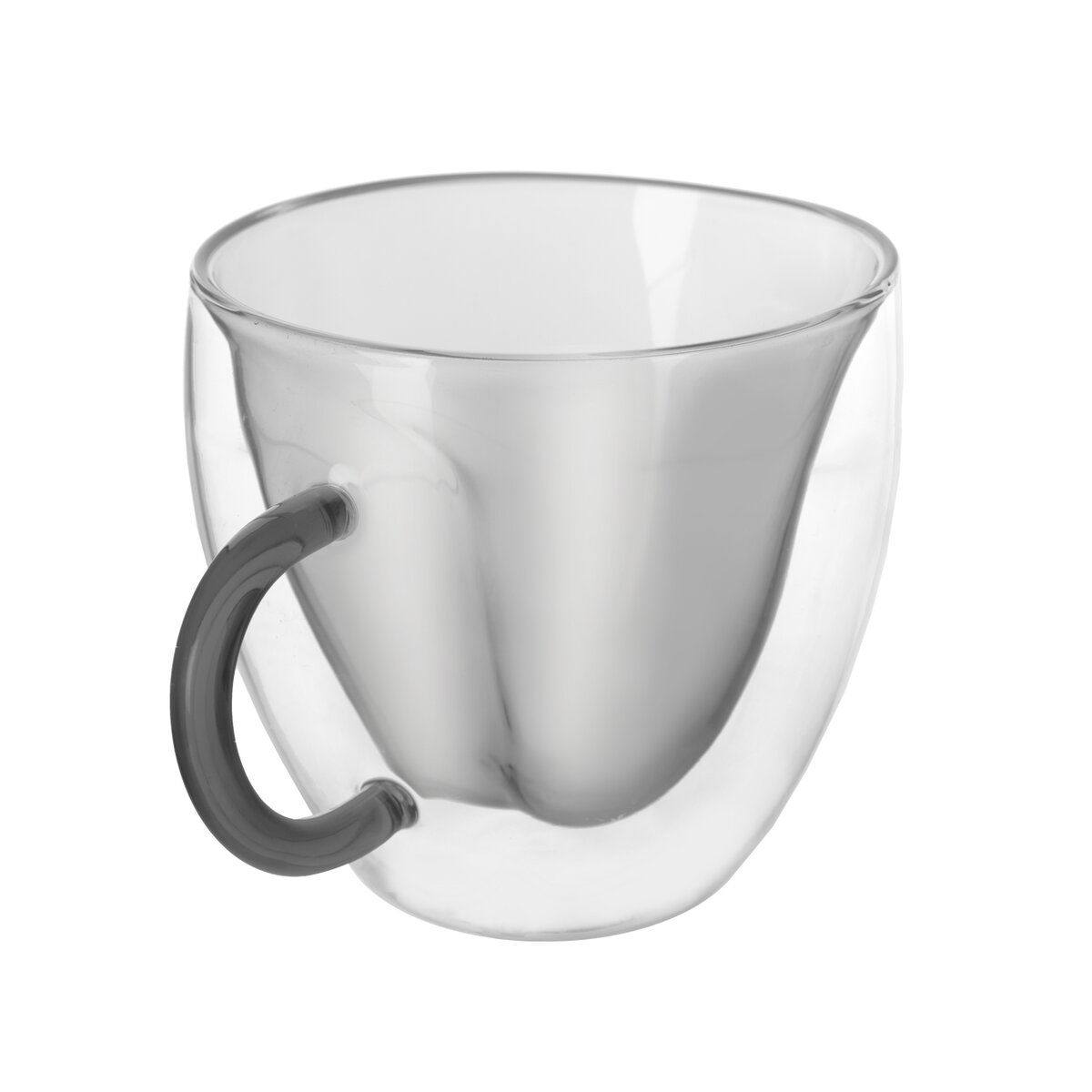 Tieto hrnčeky v kombinácii číreho a šedého skla dodávame v sade 2 kusov. Navyše je vonkajšia stena hrnčeka chladnejšia, takže vás ruka pri pití nebude páliť. A čo viac, zvláštnosťou je vnútorná časť tvarovaná do srdiečka, ktoré vynikne predovšetkým pri pohľade zhora.
