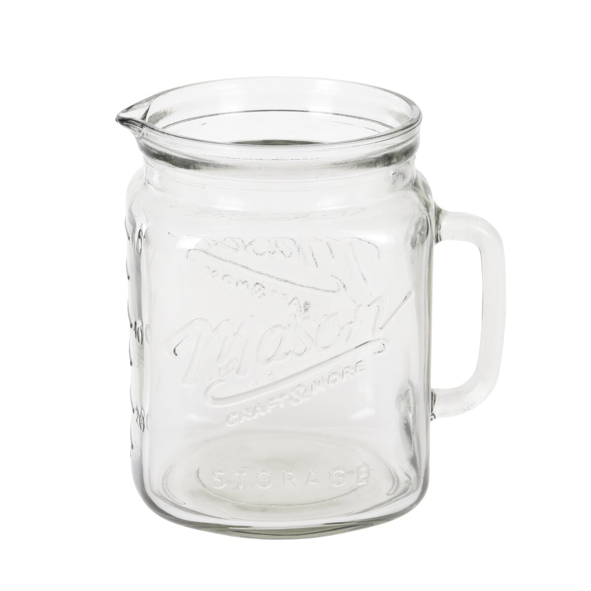 Džbán s uchom. Materiál: sklo. Rozmery: objem 2 l, 13x13/16x18 cm.