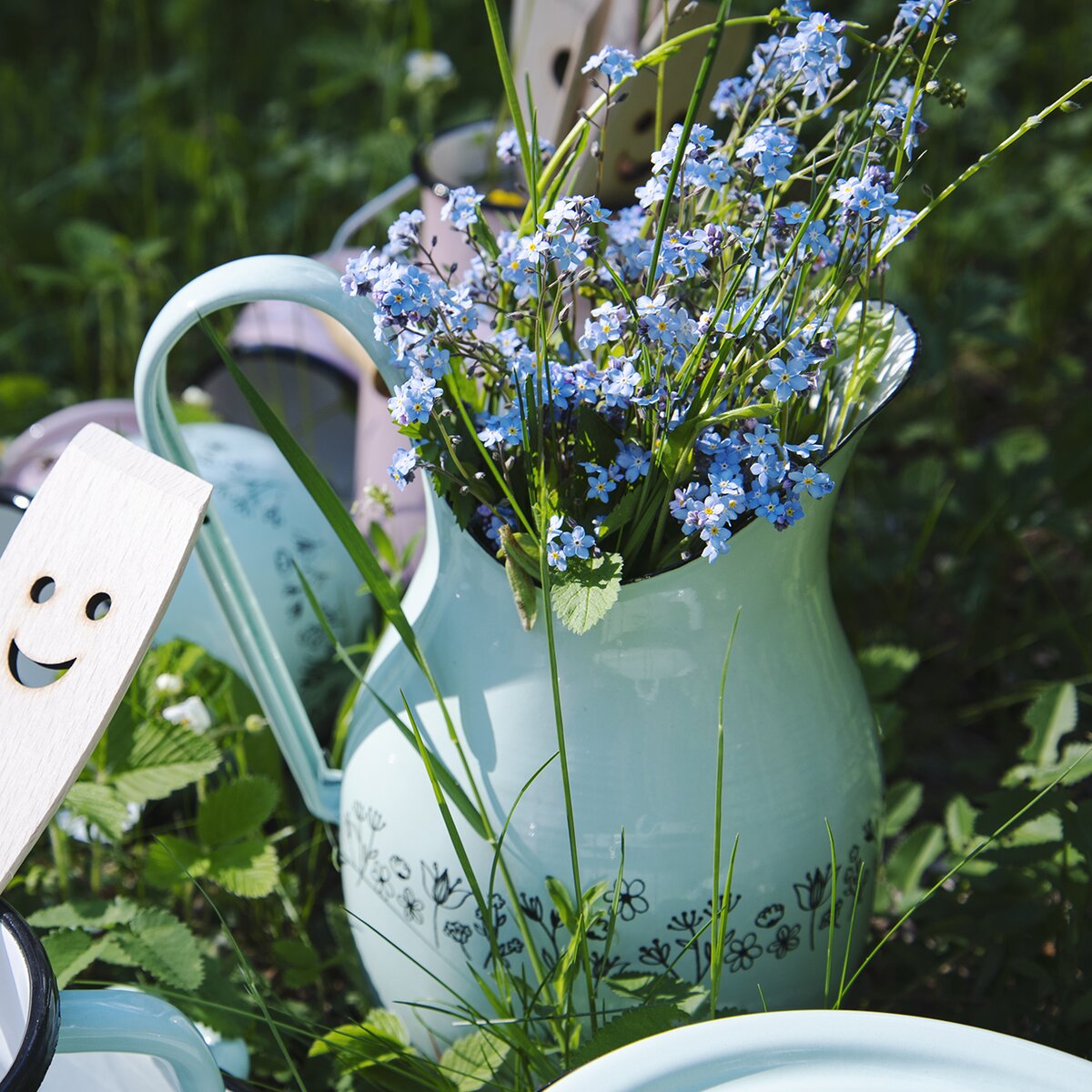 Štýlový džbán s príjemným kvetinovým motívom na zelenom podklade, výlevkou a uchom, ktorý je vyrobený z kvalitného smaltovaného plechu, ktorý zaručuje dlhú dobu používania.