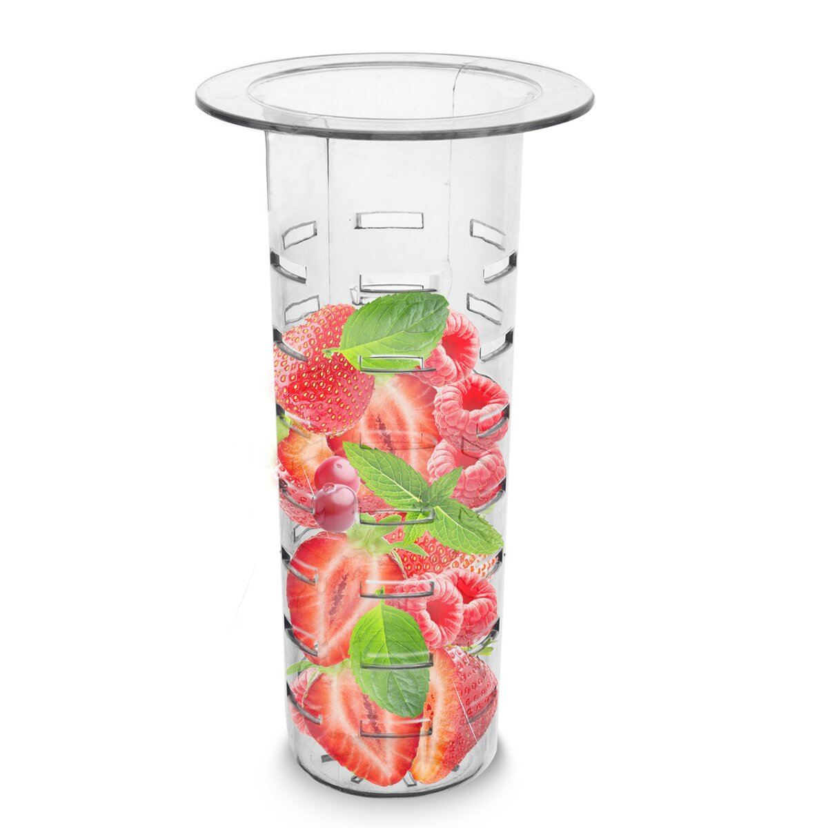 Filter do zásobníka na nápoje môžete naplniť citrusovými plodmi alebo iným ovocím, či bylinkami. Ochutí váš nápoj, ale ovocie a bylinky sa nedostanú do nápoja. Materiál: kvalitný plast. Rozmery: pr. 7,5/14 cm, v. 23 cm. Je vhodný pre fľaše s kohútikom z našej ponuky 143739, 143740.