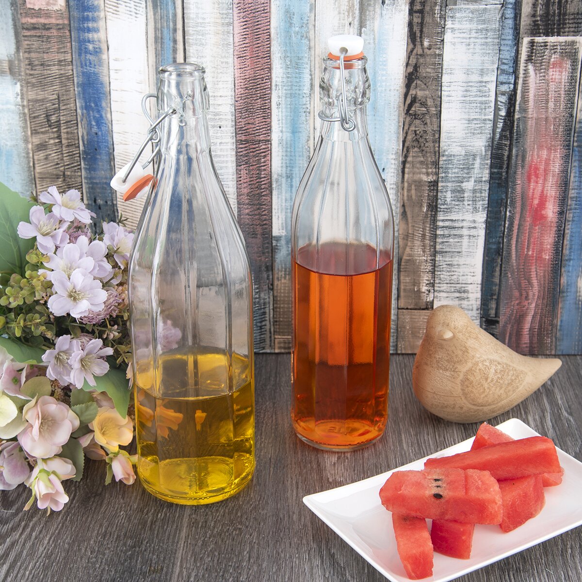 Má praktický uzáver na kovový klip a silikónové tesnenie, takže sa hodí s vychladenou limonádou aj do piknikového košíka alebo na záhradnú párty. A v zimnom období napríklad na domáci vaječný koňak alebo "baileys", ktoré poslúžia ako home made darček.