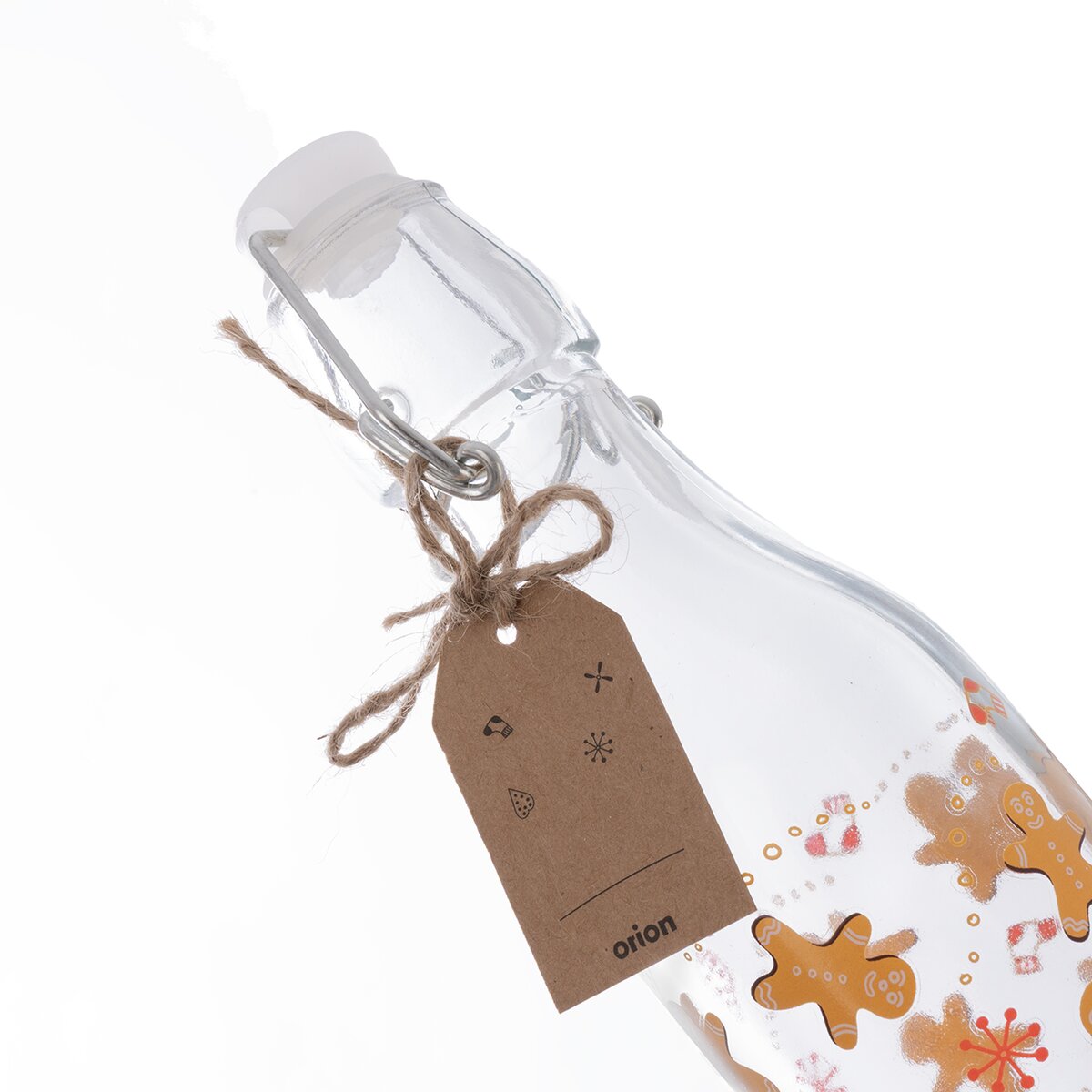 Fľaša s dekorom roztomilých perníčkov je ideálna na slivovičku, vaječný likér, sirup, šťavu a iné nápoje. Je opatrená kovovou prackou s klipovým uzatváraním.
