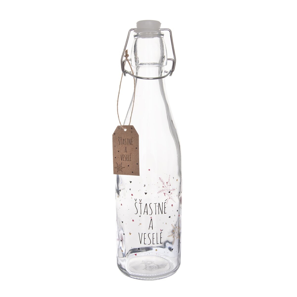 Obľúbenou klasikou je domáci vaječný koňak alebo Baileys, ale výborne sa hodí aj na vianočný punč, ochutený sirup, bylinkový likér alebo napríklad slivovicu. Fľaša VLOČKA s pákovým uzáverom a dekorom „Šťastné a veselé“ je ako stvorená pre domáce tekuté darčeky.