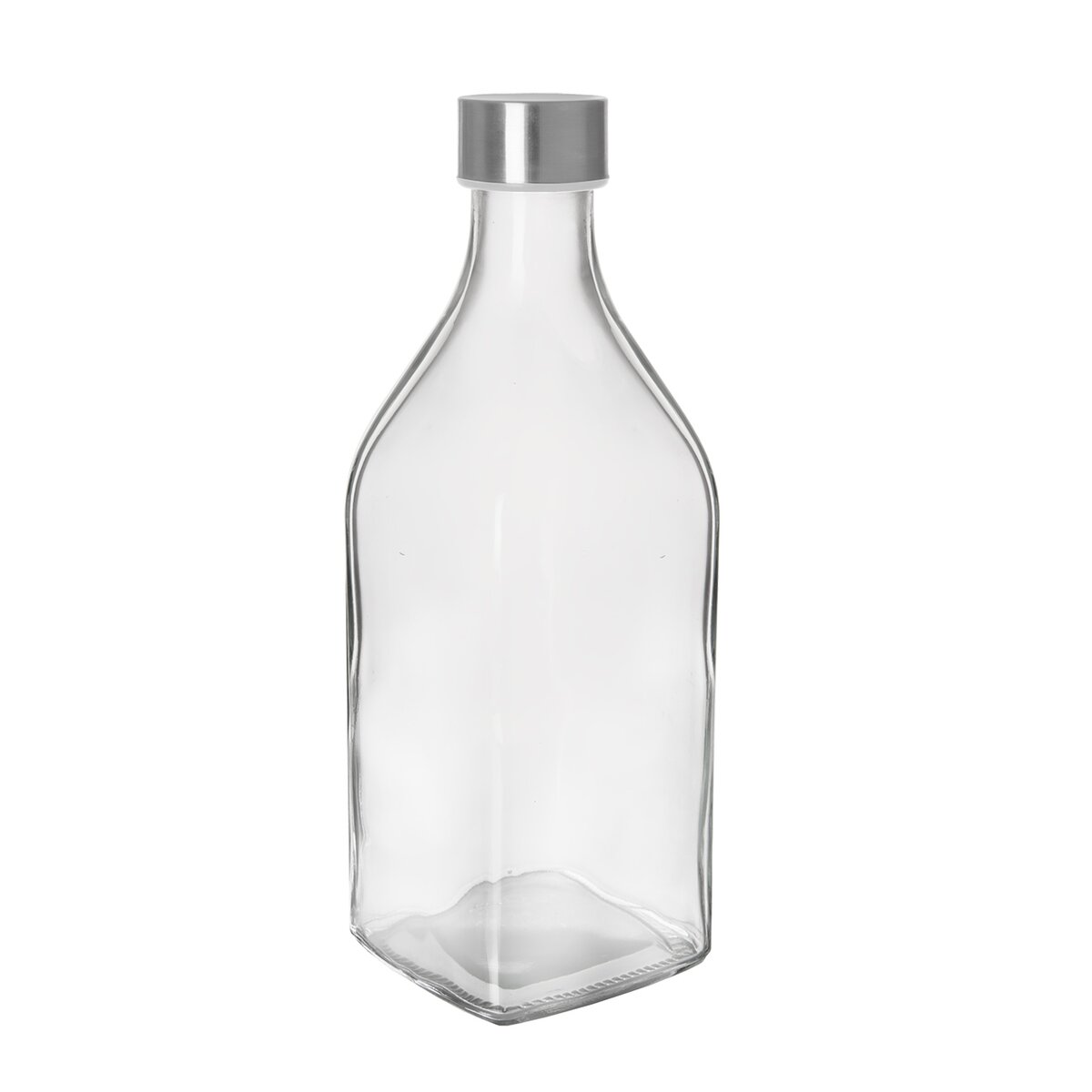 Kód produktu 128705Hranatá sklenená fľaša s objemom 1,1 l je opatrená nerezovým viečkom s plastovým závitom a silikónom.
