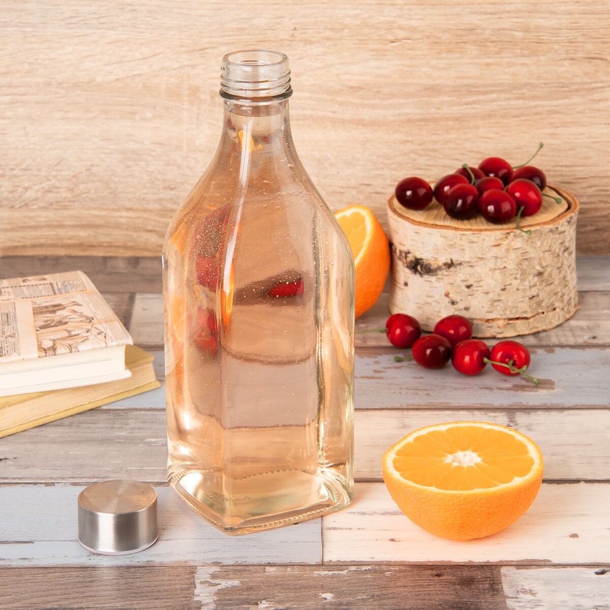 Sklenená fľaša s nerezovým uzáverom na závit je ideálna na servírovanie osviežujúcej vody, šťavy, ovocných sirupov, ľadového čaju i čerstvého muštu. Hodí sa aj na uskladnenie sirupov a iných tekutín.