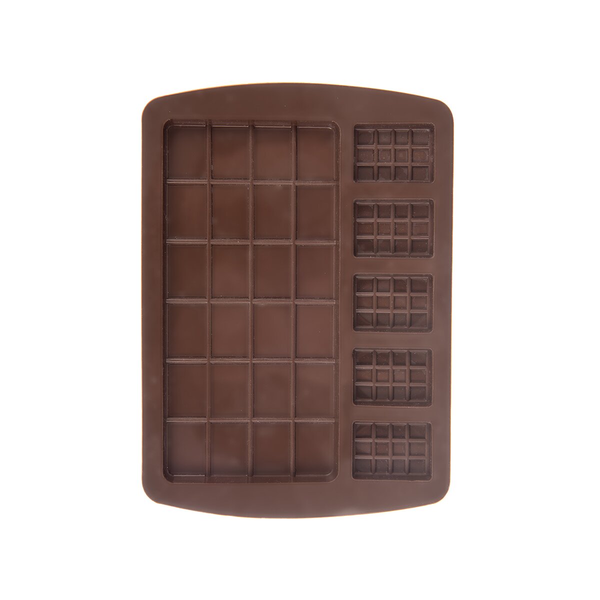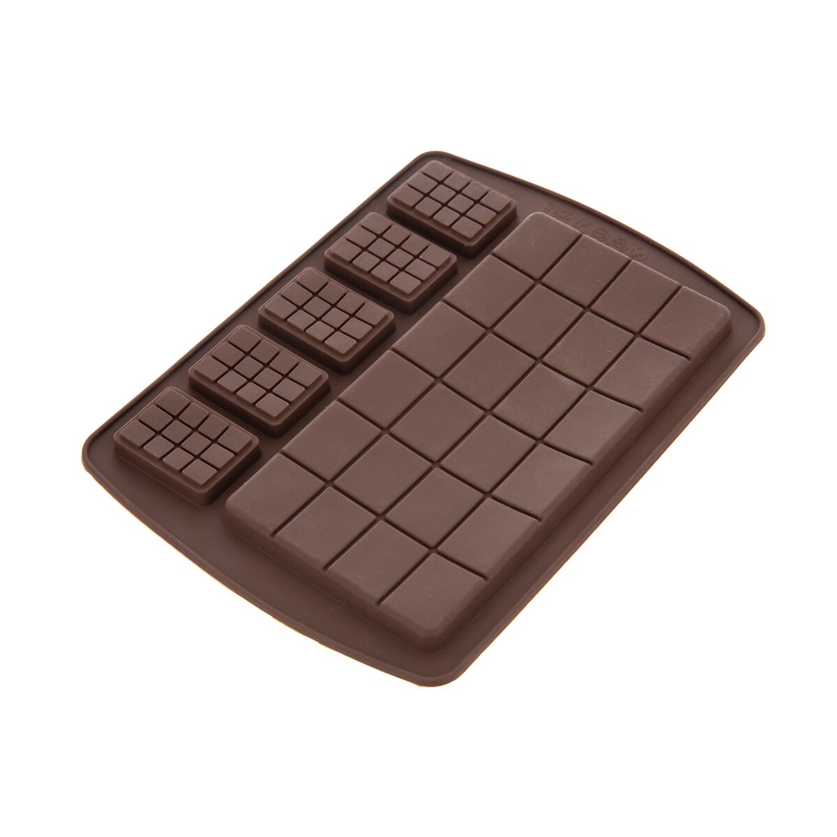 Kód produktu 154411Nepriľnavá hnedá silikónová forma na výrobu 1 väčšej čokolády a 5 ks malých čokoládových praliniek s prepracovanými detailmi.