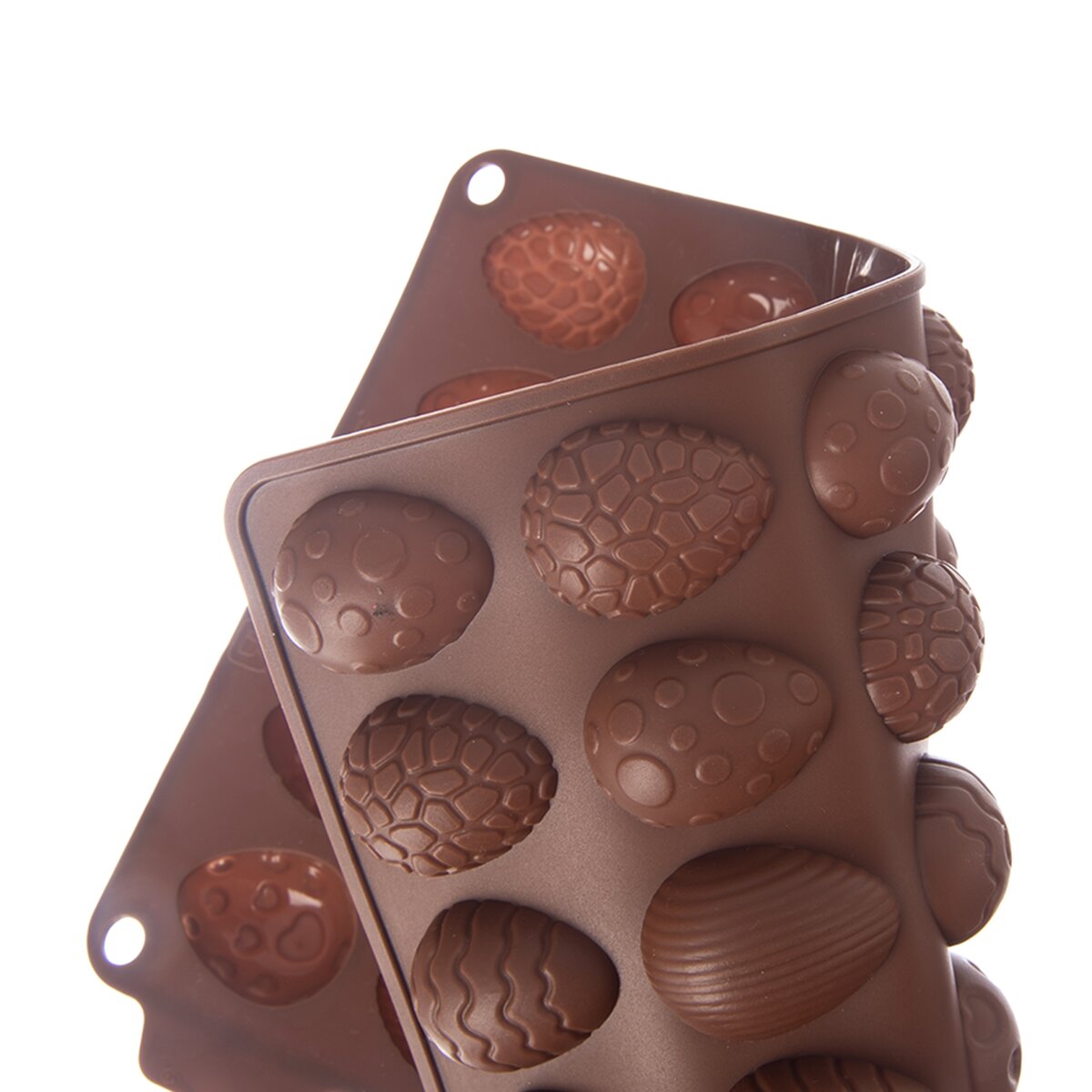 Kód produktu 154407Nepriľnavá hnedá silikónová forma je určená na výrobu originálnych čokoládových praliniek v tvare veľkonočných vajíčok, možno v nej upiecť aj drobné sušienky ku káve.