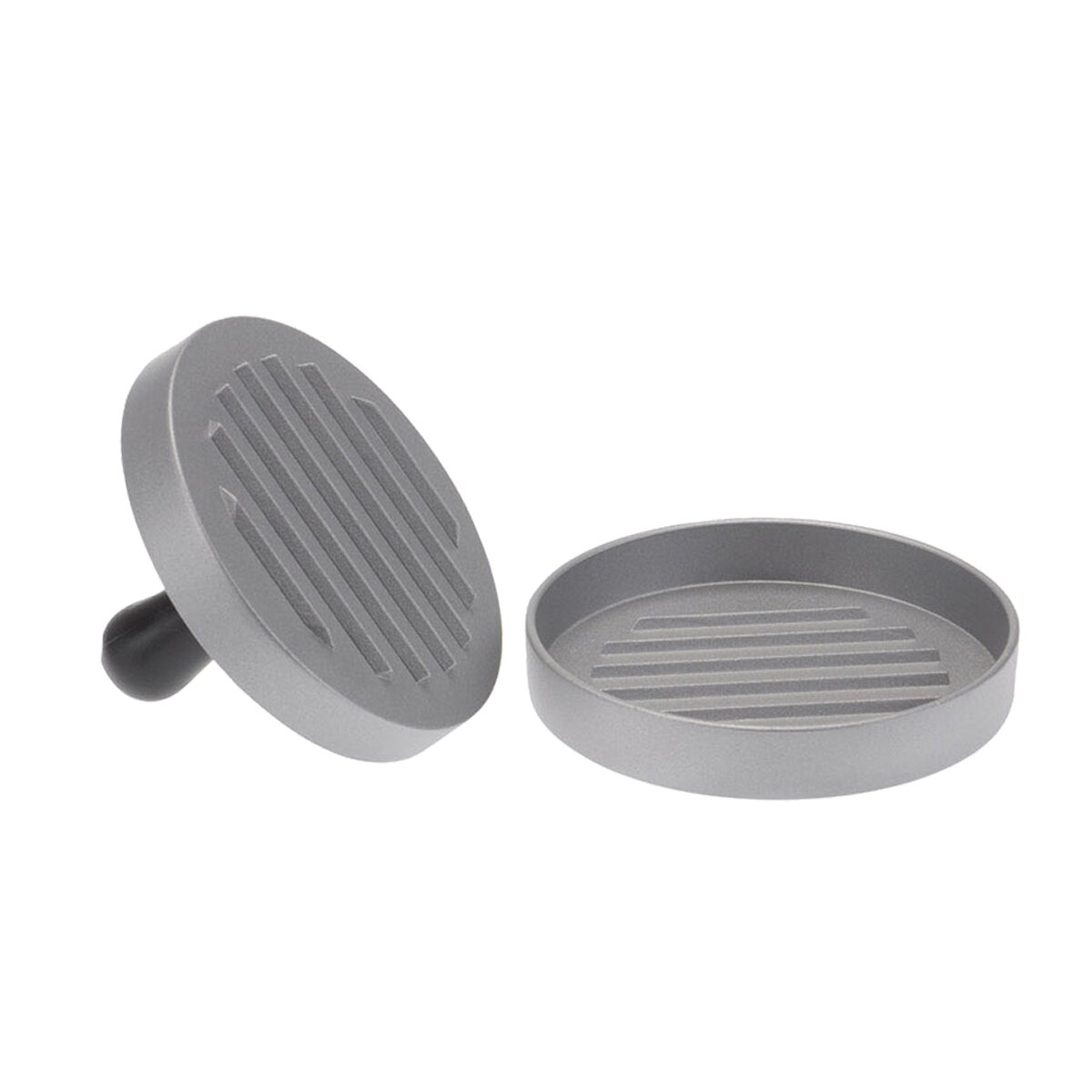 Kód produktu 120060Kovová forma na hamburgery s rebrovanou štruktúrou, zložená z dvoch dielov. Horný diel vybavený plastovým držadlom pre ľahšiu prípravu mäsových placiek.