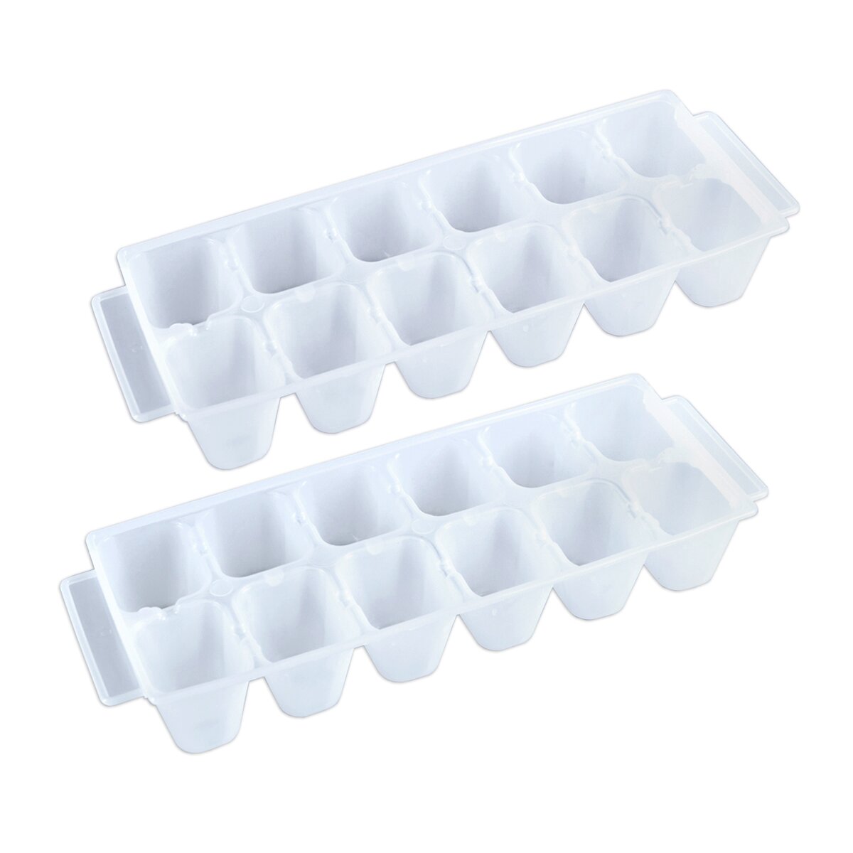 Kód produktu 122269Sada dvoch kusov bielych plastových foriem CLASSIC na 12 kociek ľadu. Každá forma má rozmer 25,5×9×4,5 cm.