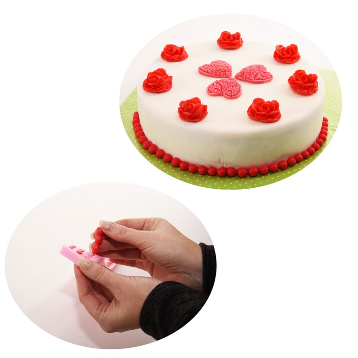 Forma je vynikajúca na ľahkú prípravu ozdôb v tvare perličiek troch veľkosti z marcipánu alebo cukrárskych hmôt. Naplnené formičky vložte na 5-10 minút do mrazničky a potom jemným zatlačením na dno vyklopte. Materiál: silikón. Vhodné do umývačky riadu. Rozmery: pr. perličiek 1cm/0,9cm/0,6cm. Forma 23x4x1,5 cm.