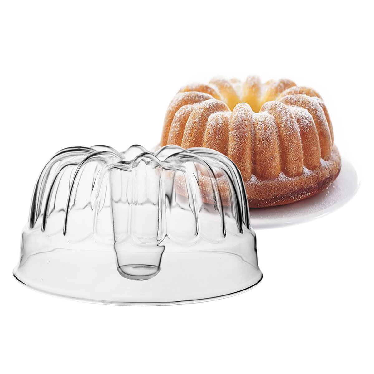 Sklenená forma z borosilikátového skla rovnomerne rozvádza teplo, takže sa bábovka prepečie dôkladne aj zospodu – a navyše máte okamžitý vizuálny prehľad, ako sa pečeniu darí. Je odolná, zdravotne nezávadná a môžete v nej aj rovno krájať.