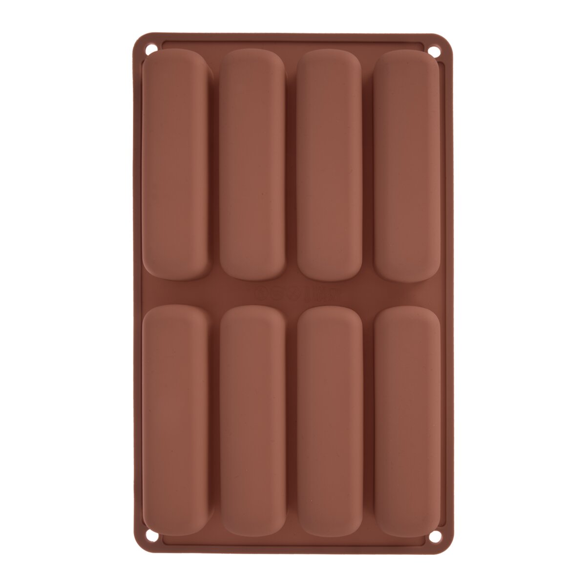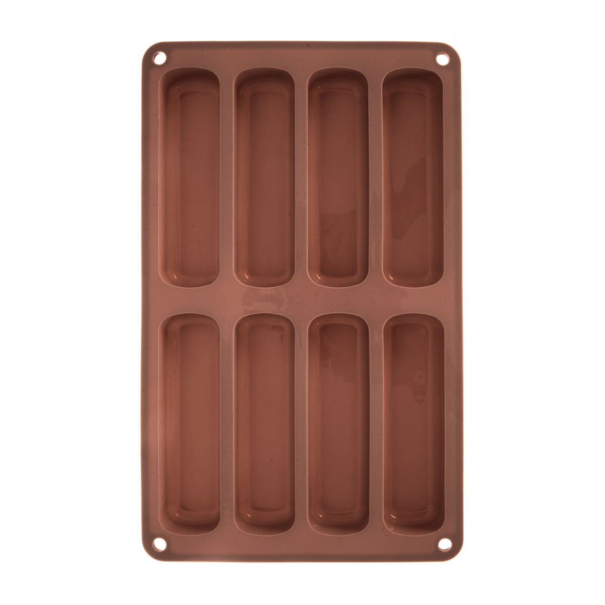 Kód produktu 154448Nepriľnavá hnedá silikónová forma je určená na rýchle a rovnomerné pečenie 8 ks cukrárskych piškót. Jedna piškóta či tyčinka bude mať rozmer 11,5x3,2 cm.