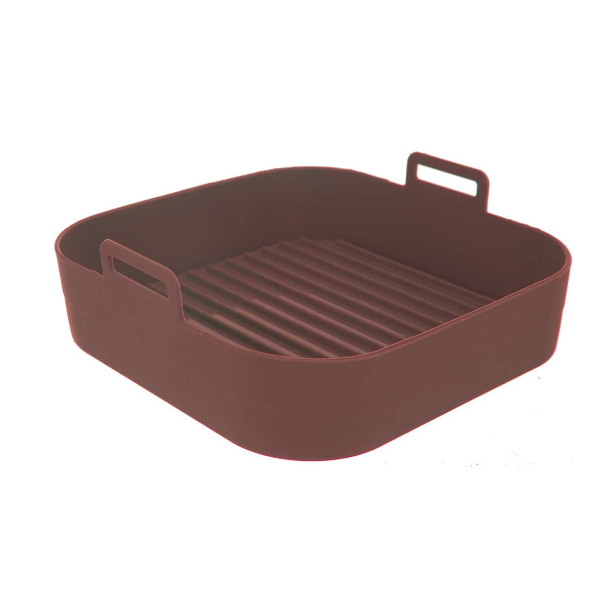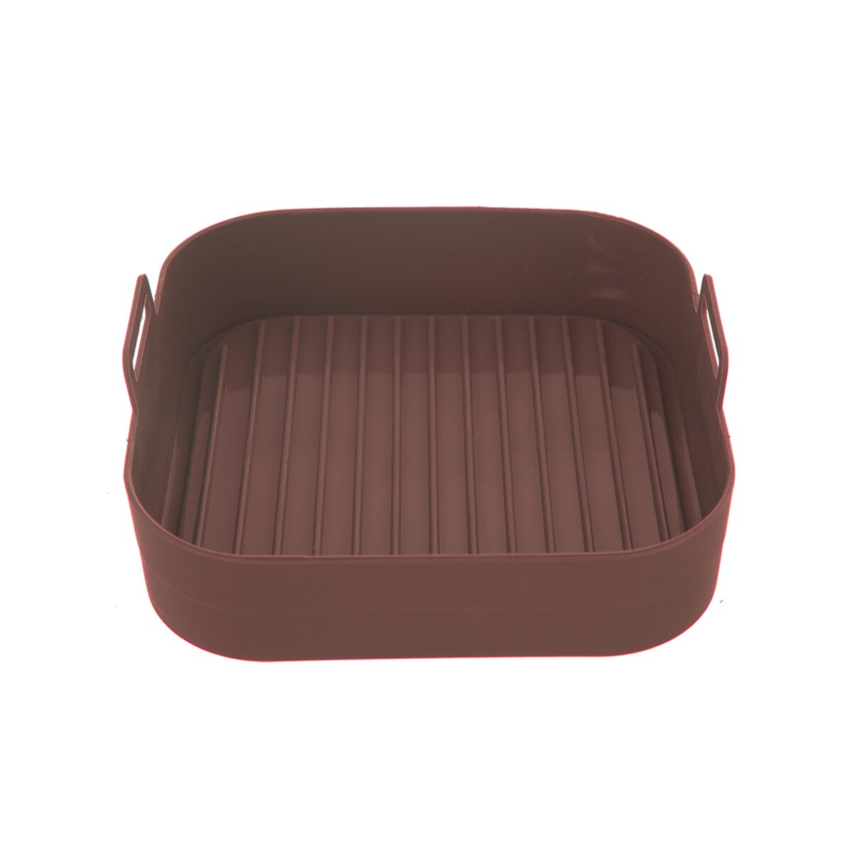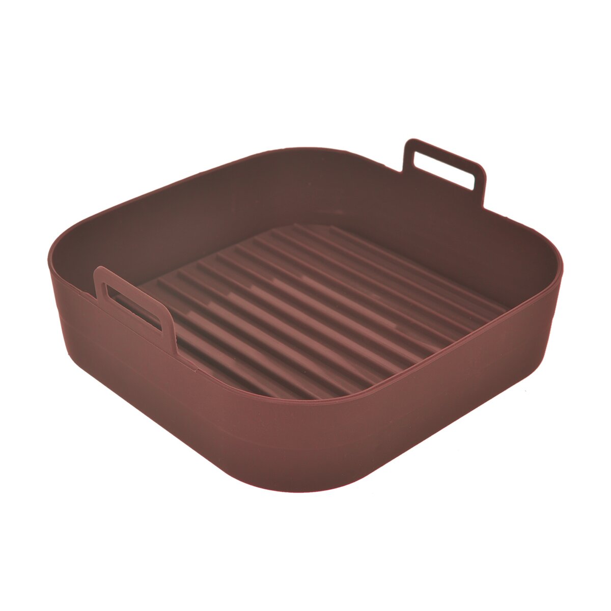 Viac informáciíNepriľnavá hnedá silikónová forma je určená ako na pečenie v bežných typoch rúr v domácnosti, tak aj ako vložka do teplovzdušnej fritézy. Práve vďaka nej si môžete ľahko, rýchlo a takmer bez tuku pripraviť hranolky, kuracie krídelká, stripsy a ďalšie obľúbené dobroty, ktoré by v normálnom fritovacom hrnci nasiakli veľkým množstvom oleja. Zároveň ochráni kôš alebo sito vo fritéze bez toho, aby strúhanka alebo malé kúsky mäsa či zeleniny prepadávali dovnútra alebo došlo k jej ušpineniu či poškriabaniu. Má výšku bez držadiel 4,5 cm.