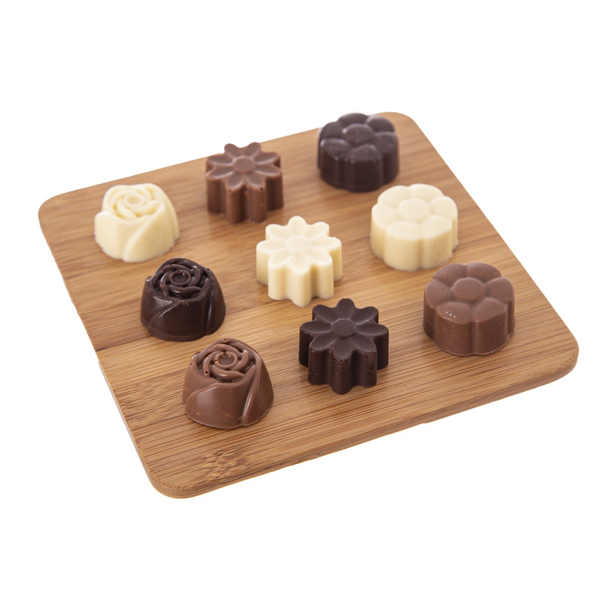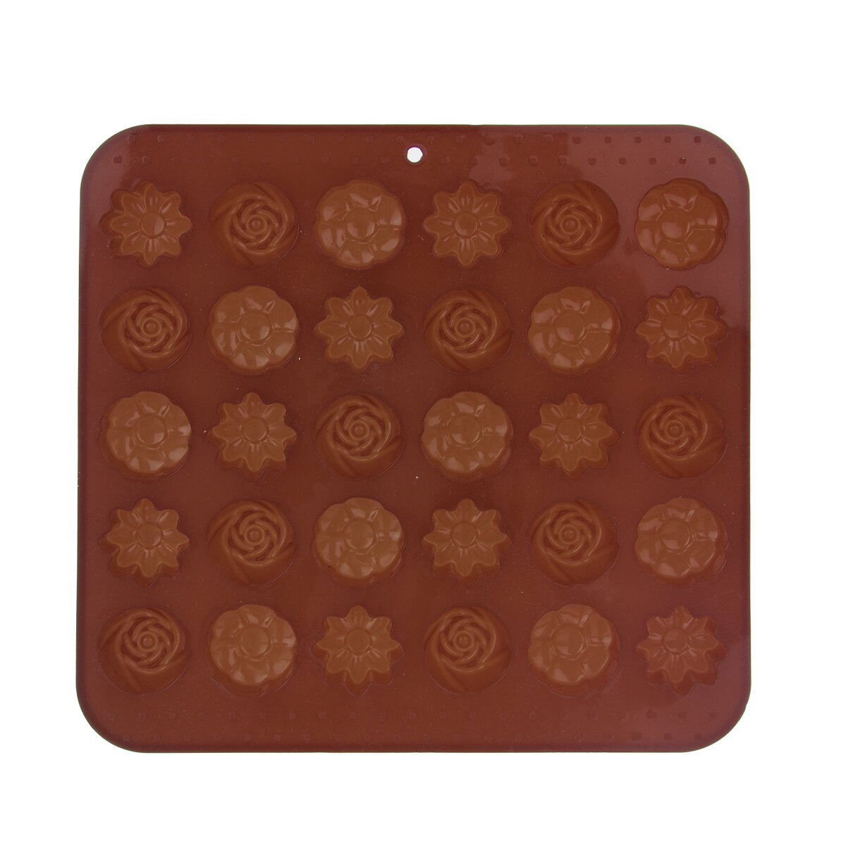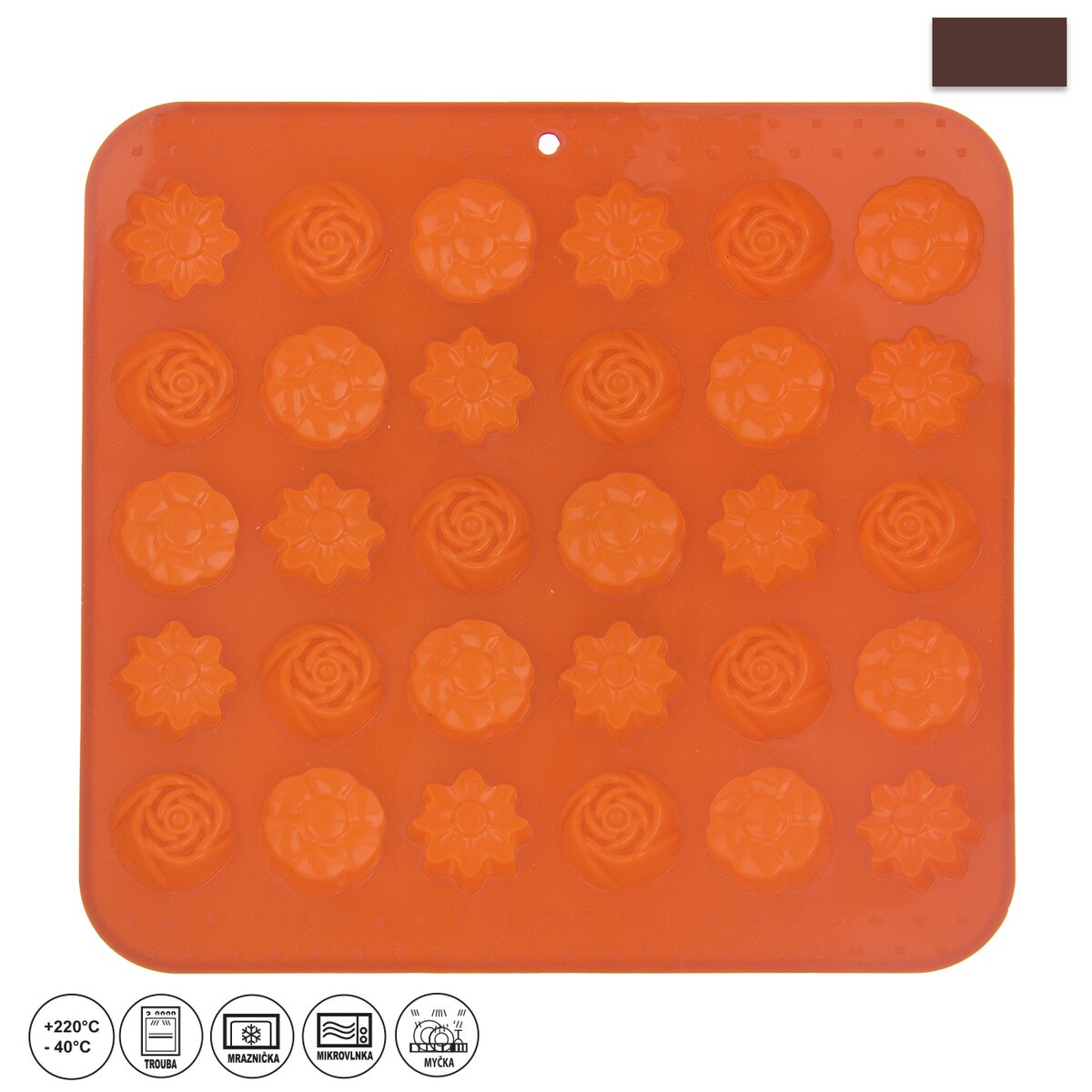 Kód produktu 120037Silikónová forma vám vytvorí krásne kvety z bielej alebo tmavej čokolády. Môžete v nej aj rovnako dobre tieto tvary upiecť z cesta. Materiál: silikón. 30 kvetov. Znáša vysoké teploty (od -40 °C do +230 °C), nepohlcuje chute ani vône z použitých potravín. Vhodná do umývačky riadu. Rozmery: 21x20,5x1,5 cm, kvet pr. cca 2,8 cm.