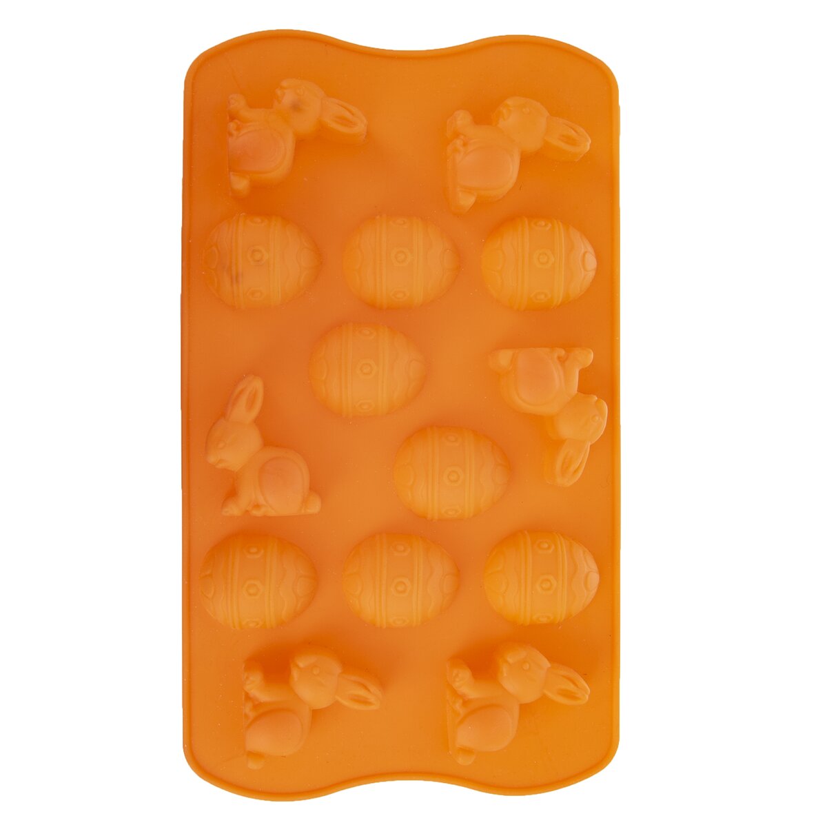 Kód produktu 151749Nepriľnavá veľkonočná oranžová silikónová forma pre rýchle a rovnomerné pečenie 14 ks sušienok v tvare zajačikov a vajíčok alebo na výrobu originálnych praliniek.