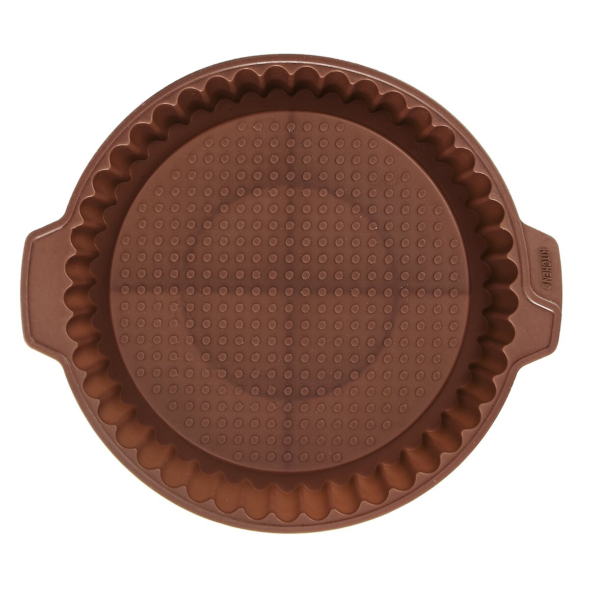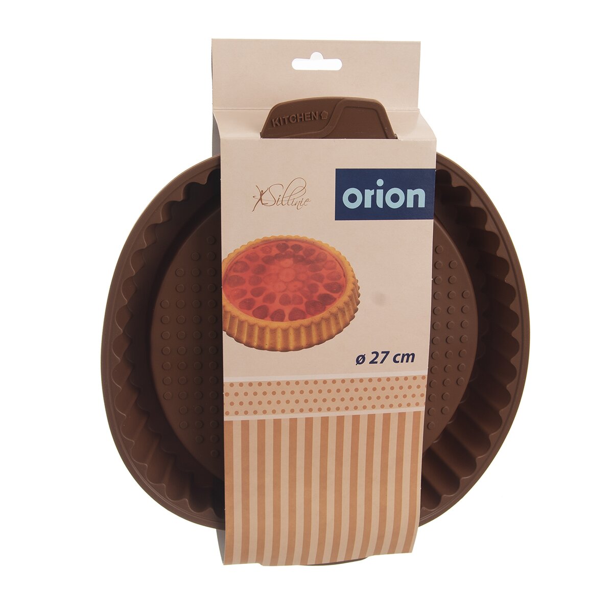 Hnedá silikónová forma s priemerom 27 cm, s antiadhéznym povrchom, na prípravu dozlatista upečeného nadýchaného korpusu, ktorý má zvýšený okraj a po otočení možno vnútrajšok plniť tvarohom, ovocím zaliatym želatínou alebo inou obľúbenou náplňou. Naviac má spevnené dno, aby bol korpus rovný.