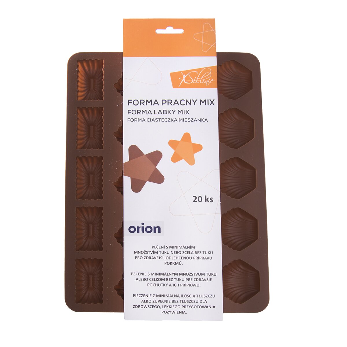 Kód produktu 111577Sušienky 20 ks, rozmery (šxhxv): 28,5x21x1,5 cm.Silikónové formy sú ľahké a nepriľnavé, cesto sa v nich nepripeká, nepreberajú pachy z potravín. Odolné teplotám od -40 °C do +220 °C. Ľahké umývanie v umývačke riadu, sú veľmi skladné.
