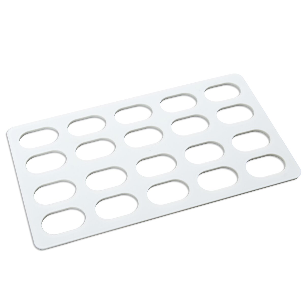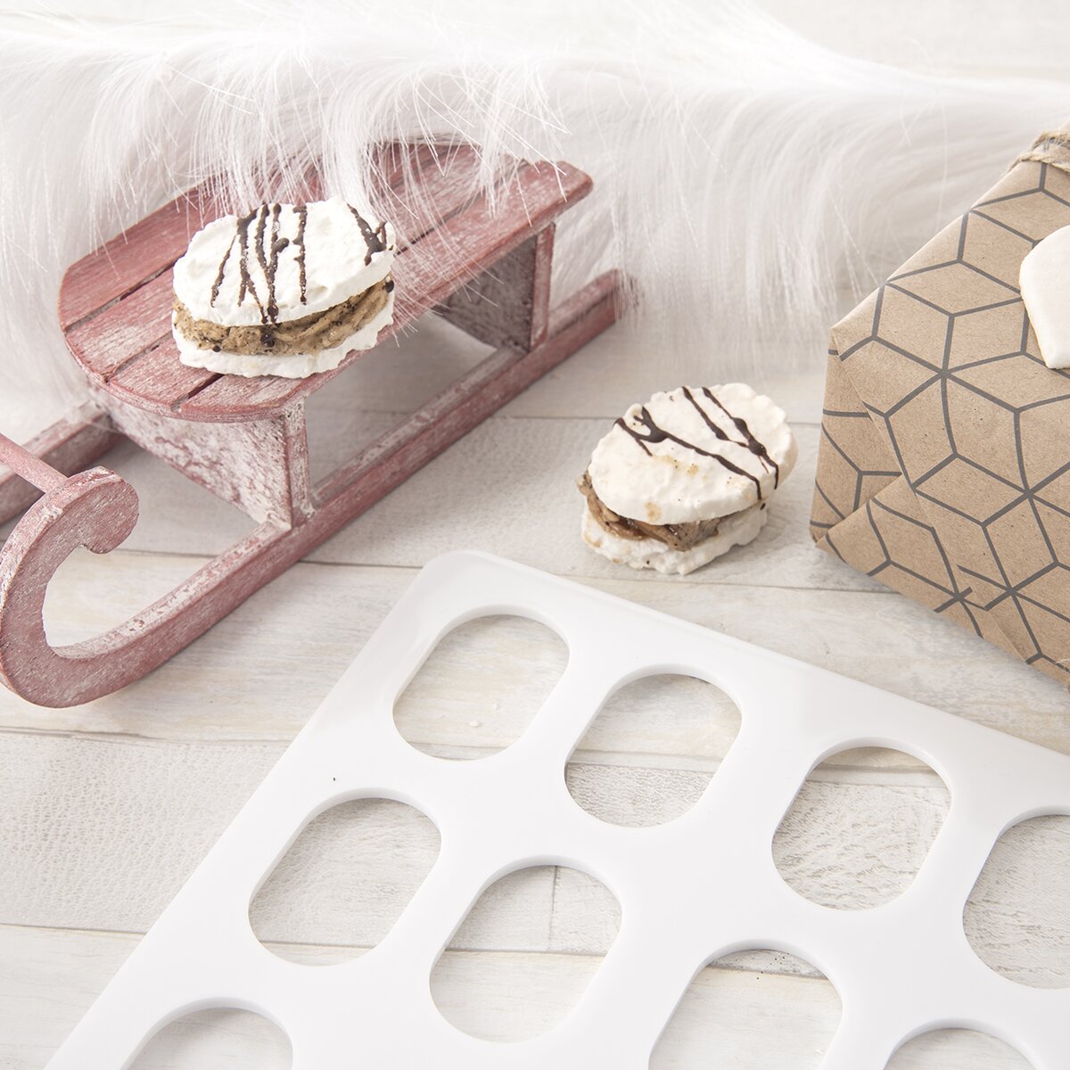 Kód produktu 124921Šikovná forma na prípravu 20 ks oválnych snehových laskoniek naraz, veľkosť jednej laskonky 4,5x3 cm. Možnosť umývať v umývačke.