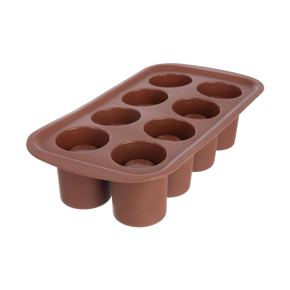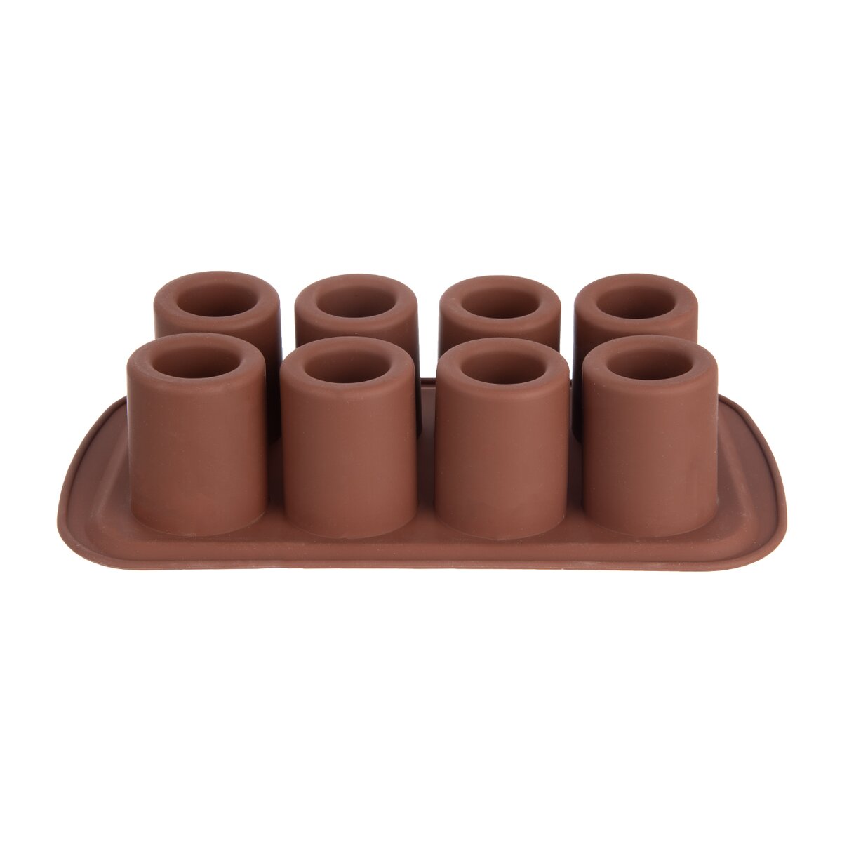 Kód produktu 154474Nepriľnavá silikónová forma na prípravu likérových špičiek v hnedej farbe umožní upiecť 8 kusov sladkých korpusov naraz. Možno ju tiež vylievať čokoládou alebo na výrobu zaujímavých ľadových panákov naplniť vodou a nechať zamraziť.