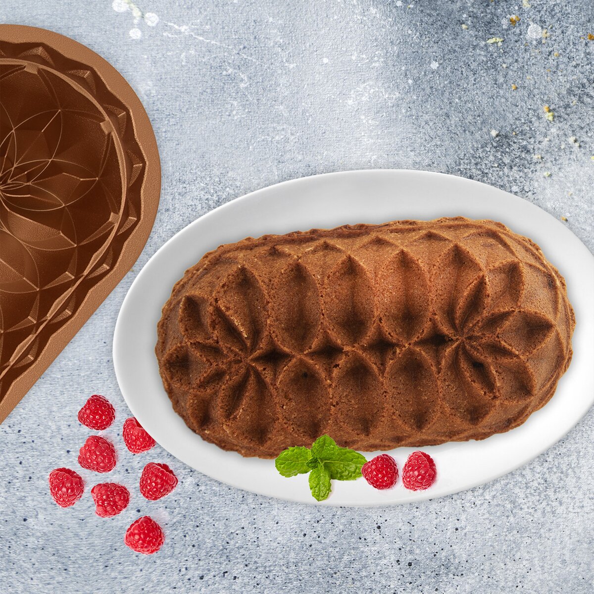Viac informáciíModerný tvar formy MARISSA KVET veľkosti 26x15x7,5 cm, vo veľmi trendovom, luxusne vyzerajúcom prevedení a farbe medi. Oválna forma je nielen praktická, ale tiež pôsobivá. Bude navyše krásnou dekoráciou v modernej i rustikálnej kuchyni.