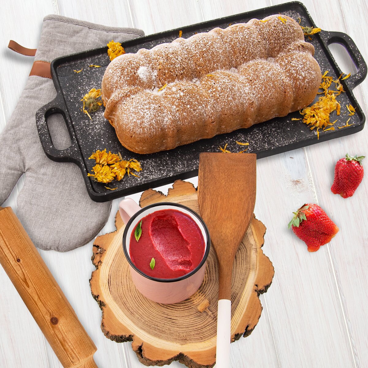 Podlhovastá forma je opatrená nepriľnavým povrchom PFLUON, vhodná na pečenie piškótového, kysnutého cesta, ale aj plniek, sekanej. A čo takto domáci chlieb s chrumkavou kôrkou v netradičnom tvare?