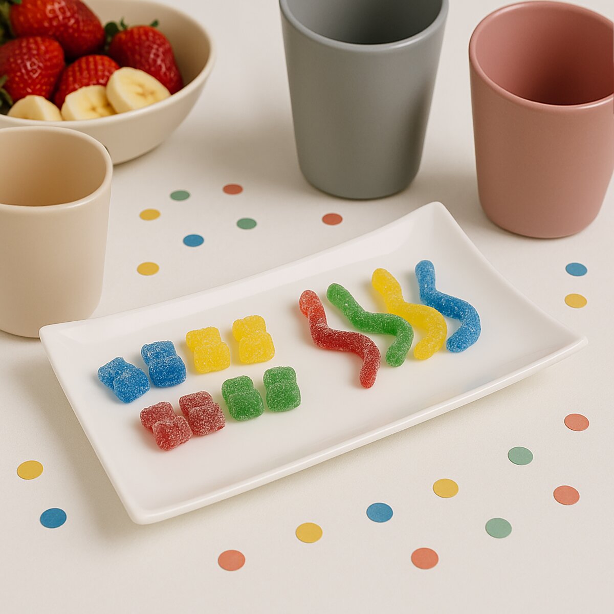 A na rozdiel od tých kupovaných budú bez konzervantov, umelých farbív a sladidiel, čo oceníte u malých detí, ktorým nechcete dávať ako odmenu presladené maškrty. Skúste napríklad cukríky z domácich sirupov alebo rozmixovaného čerstvého ovocia, spojeného želatínou. Rozmery medvedíkov sú 3,5 cm a dážďovky majú dĺžku 8 cm.