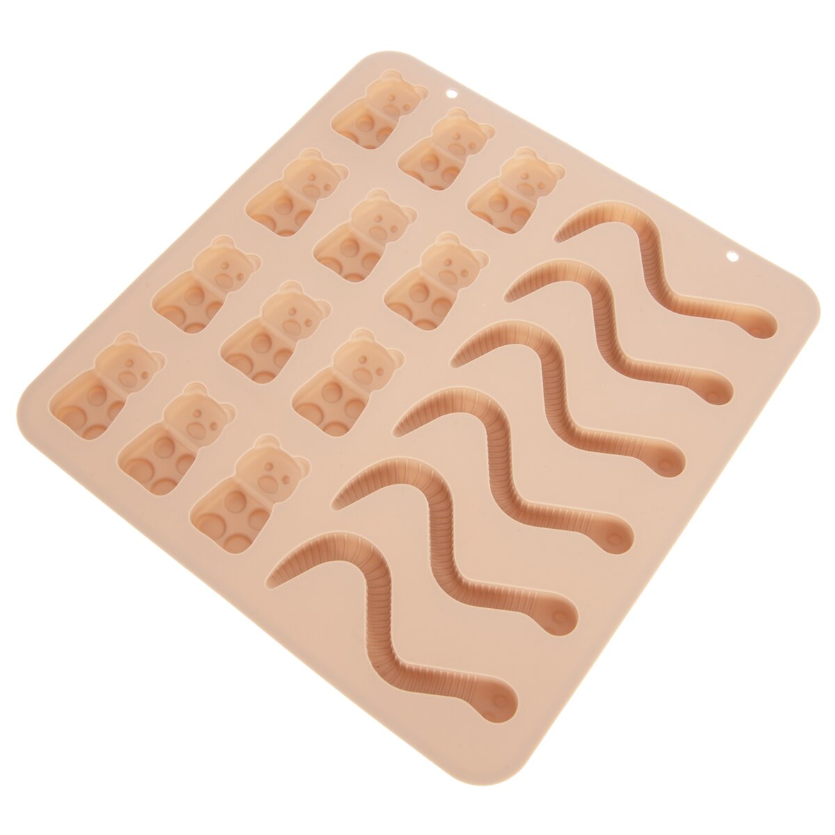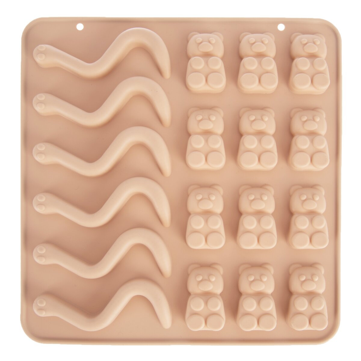 Kód produktu 154469Nepriľnavá béžová silikónová forma pomôže s domácou výrobou želatínových cukríkov, obľúbených gumových medvedíkov a dážďoviek alebo čokoládových praliniek.