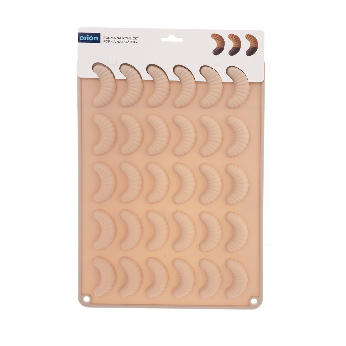 Kód produktu 154465Nepriľnavá béžová silikónová forma umožní naraz upiecť 30 ks vanilkových, čokoládových alebo orechových rožkov, poradí si aj s výrobou domácej čokolády v tomto tvare.