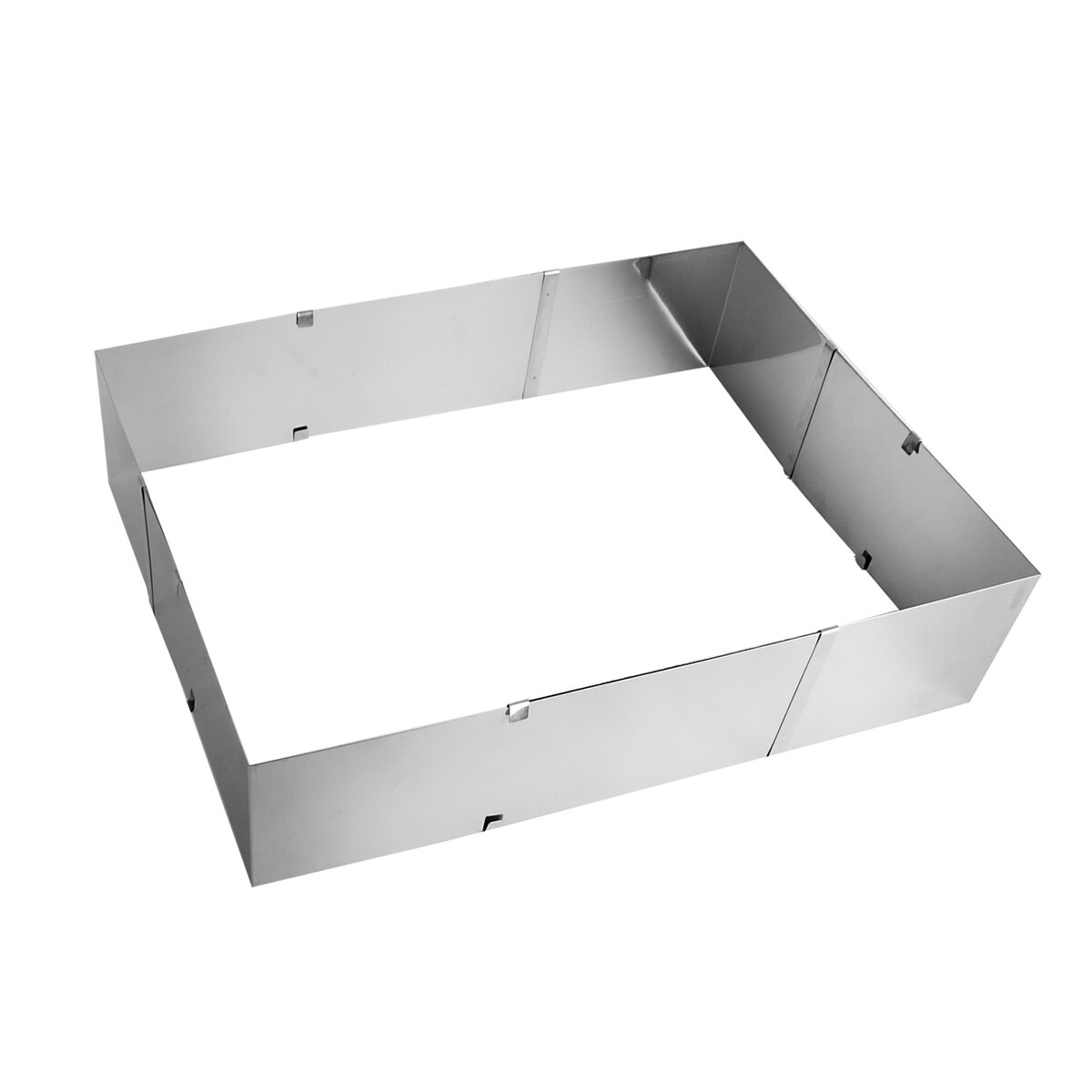 Kód produktu 122263Posuvná nerezová hranatá forma na pečenie tort a múčnikov rôznych veľkostí, od 20x24 cm do 38x46 cm, ideálna pri pečení niekoľkoposchodových tort. Možnosť umývania v umývačke.