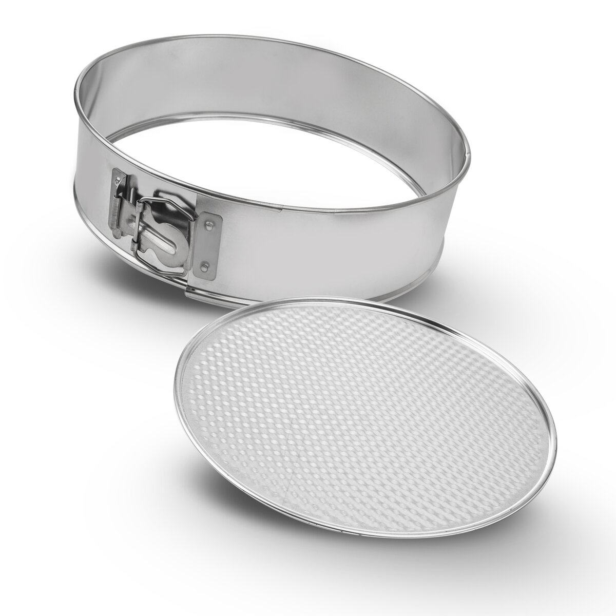 Kód produktu 151770Okrúhla tortová pocínovaná forma s priemerom 18 cm, s odnímateľným dnom na pečenie korpusu aj výrobu nepečených múčnikov a aspikov. Je opatrená prackou pre ľahšie vyberanie upečených dobrôt.