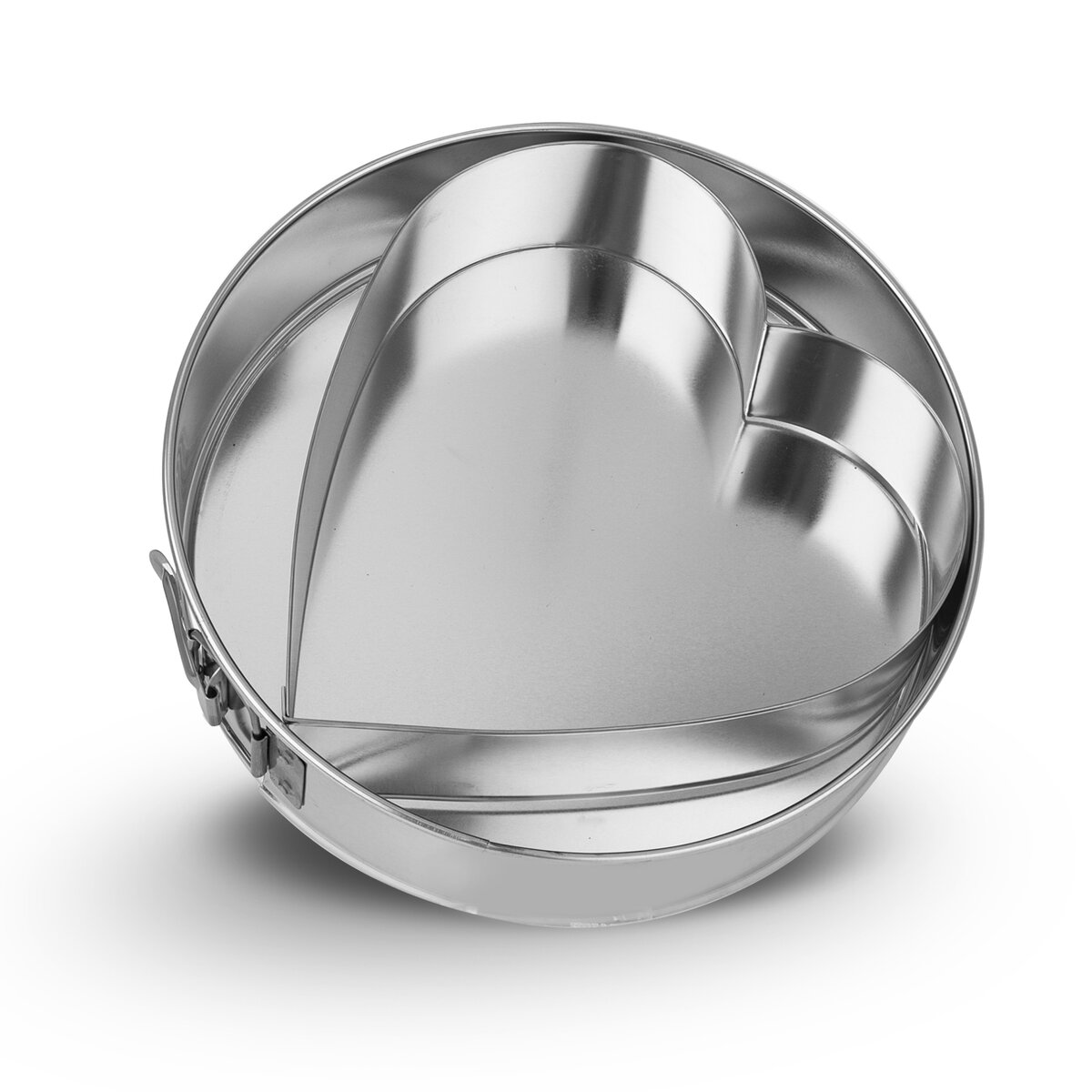 Kód produktu 122288Okrúhla pocínovaná forma s priemerom 24 cm, sa odnímateľným dnom na pečenie torte, navyše s vloženou srdcovou formou. Je opatrená prackou pre ľahšie vyberanie upečených dobrôt.