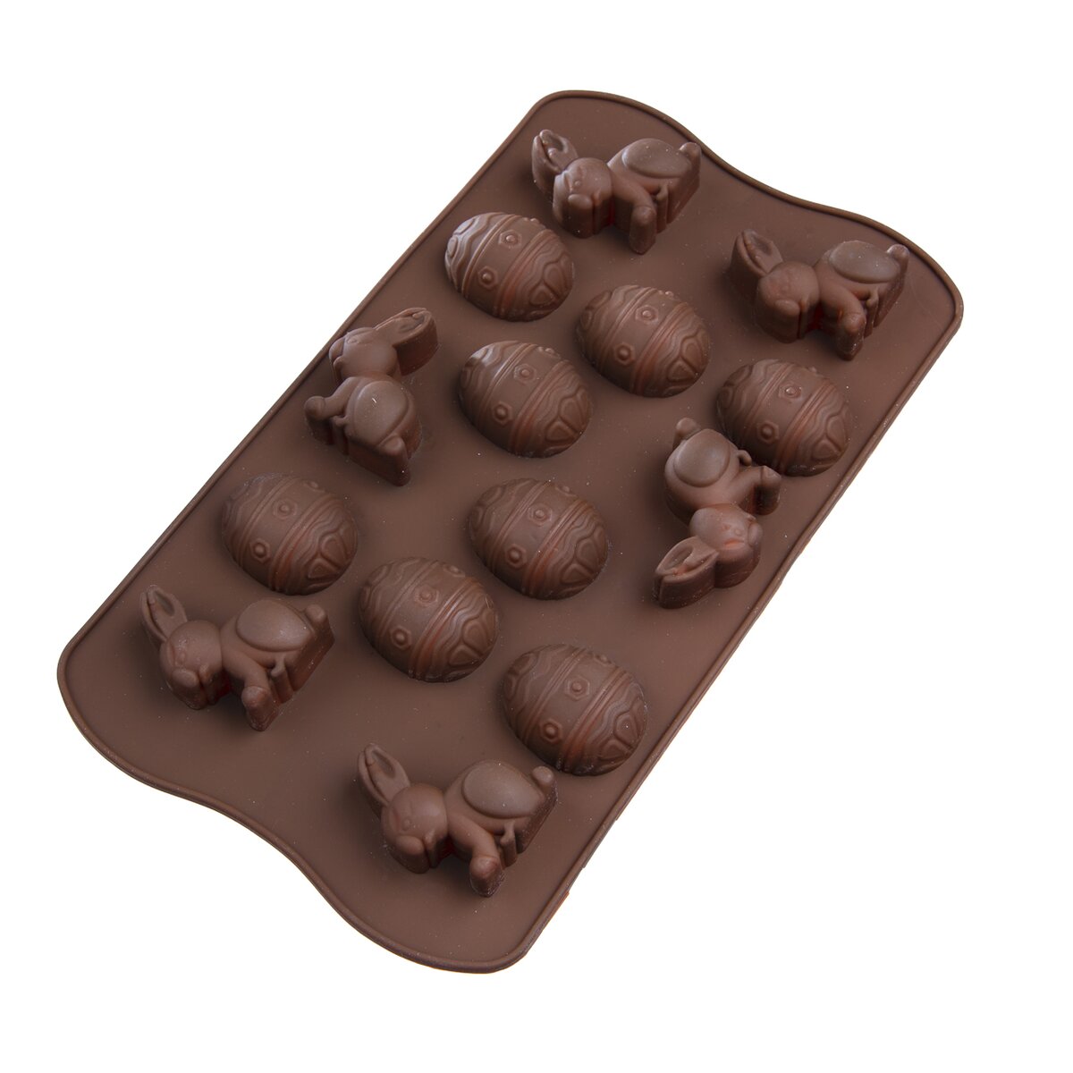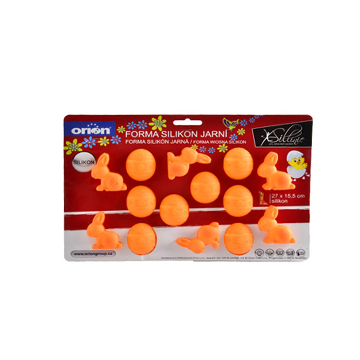 Kód produktu 123255Silikónová forma Vám vytvorí krásne veľkonočné pralinky v tvare vajíčok a zajačikov z bielej alebo tmavej čokolády. Môžete v nej aj tieto tvary upiecť z cesta. Materiál: silikón. Znáša vysoké teploty (od -40 °C do +220 °C), nepreberá chute ani vône z použitých potravín. Vhodná do umývačky na riad. Rozmery: 27x15,5 cm, vajíčko 4x3 cm, zajačik 5x3,5 cm. Dá sa umyť v umývačke na riad.