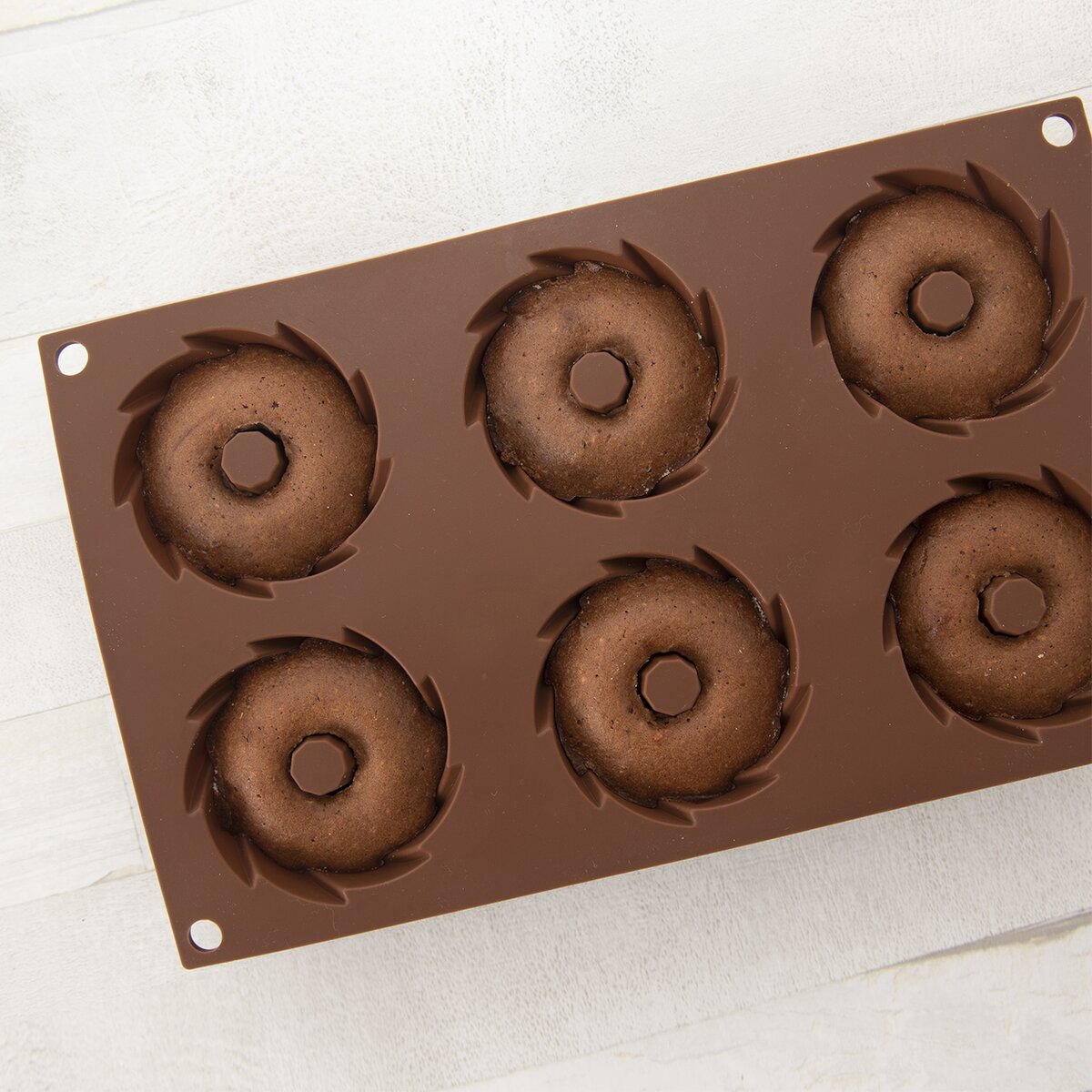 Vďaka kvalitnej hnedej silikónovej forme v tvare malých venčekov bude pečenie 6 ks sladkých aj slaných dobrôt ľahšie. Priemer jedného venčeka je 7 cm. Formy sú vyrobené z odolného, žiaruvzdorného silikónu, určeného na styk s potravinami.