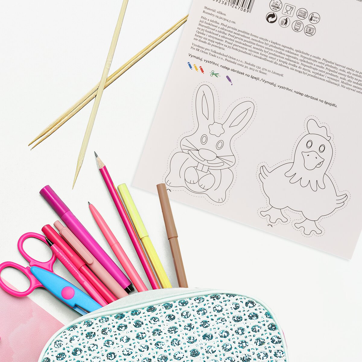 Orion tip: na zadnej strane papierovej karty, na ktorej je forma pripevnená, sú pre deti pripravené obrázky zvieratiek, ktoré si môžu podľa vlastnej fantázie vyfarbiť, vystrihnúť, nalepiť na špajli a hrať s nimi divadlo. Vhodné pre deti od 3 rokov.