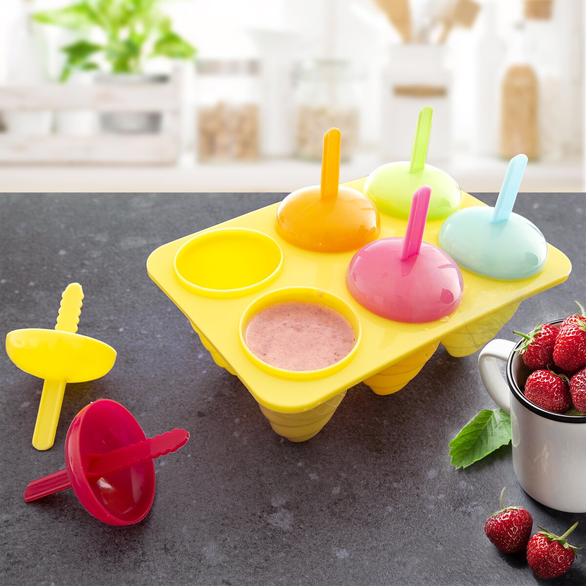 Kód produktu 123219Forma na prípravu domácich nanukov a zmrzliny so šiestimi formičkami s farebnými držadlami, ktoré zabráni stekaniu zmrzliny po rukách.